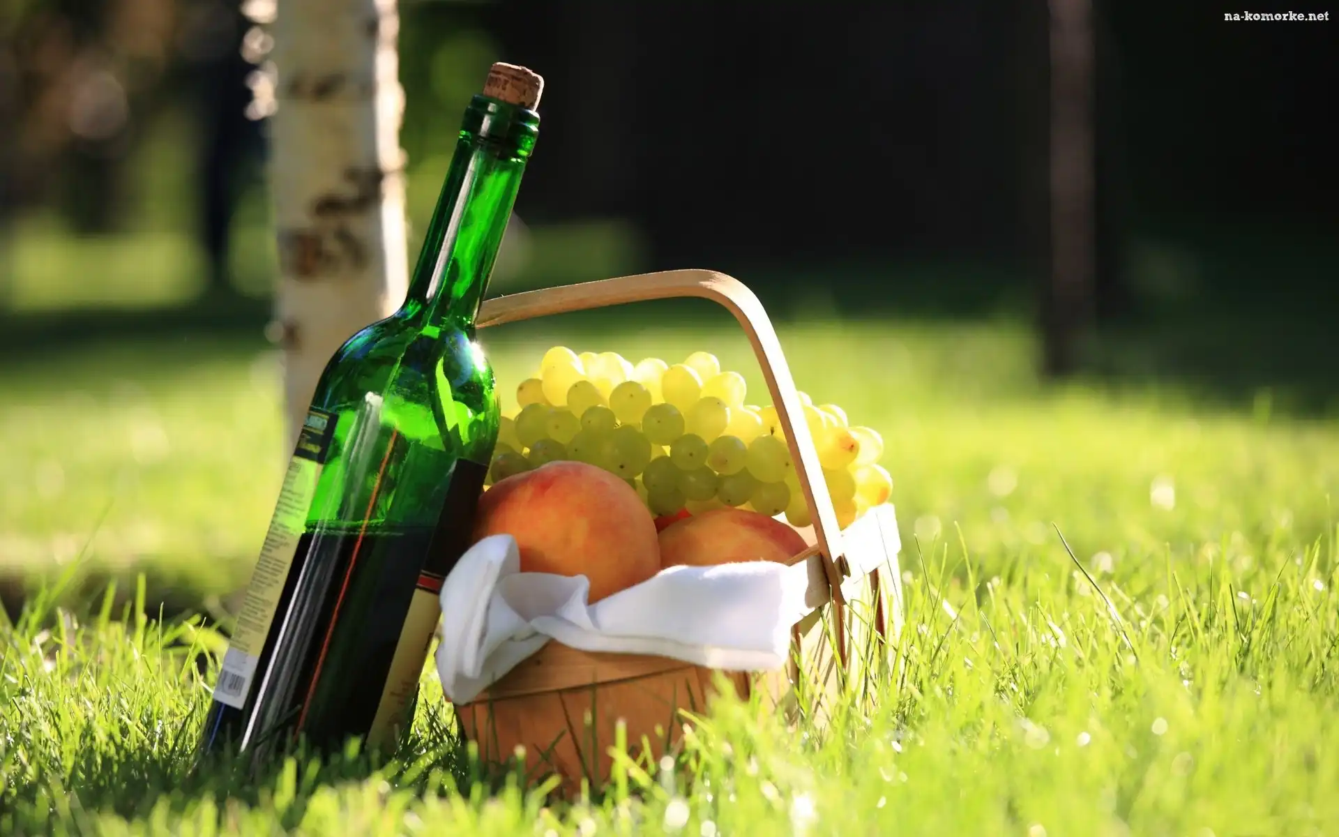 Piknik, Koszyk, Wino, Winogrona, Brzoskwinie na Komórkę