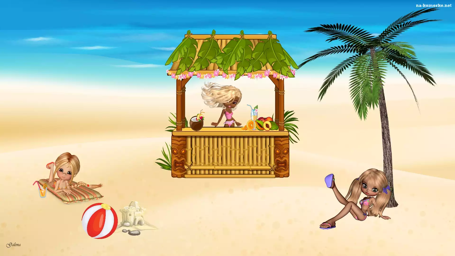 Piłka, Palma, Plaża, Grafika, Laleczki, Bar na Komórkę