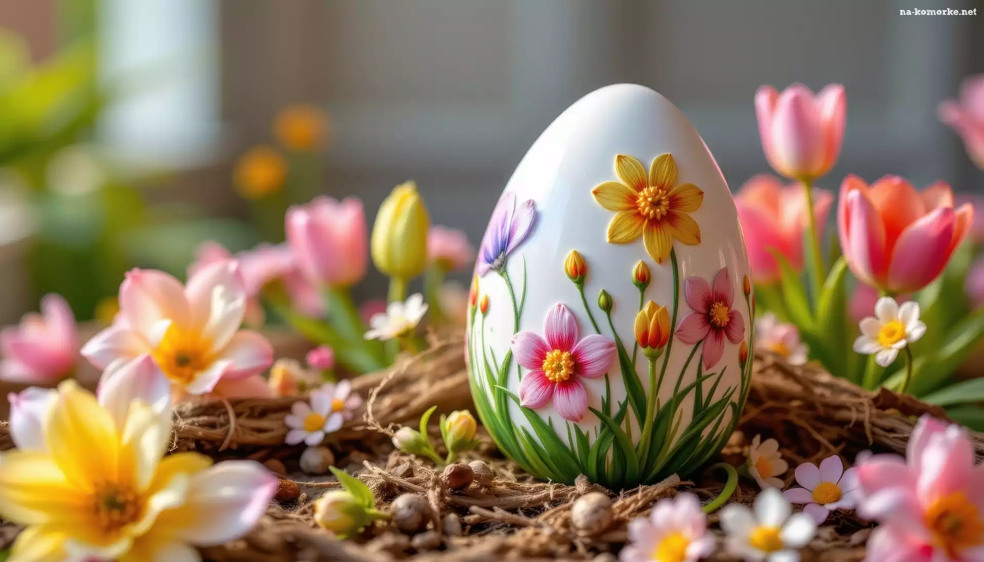 Białe, Pisanka, Kwiaty, Jajko, Wielkanoc na Komórkę