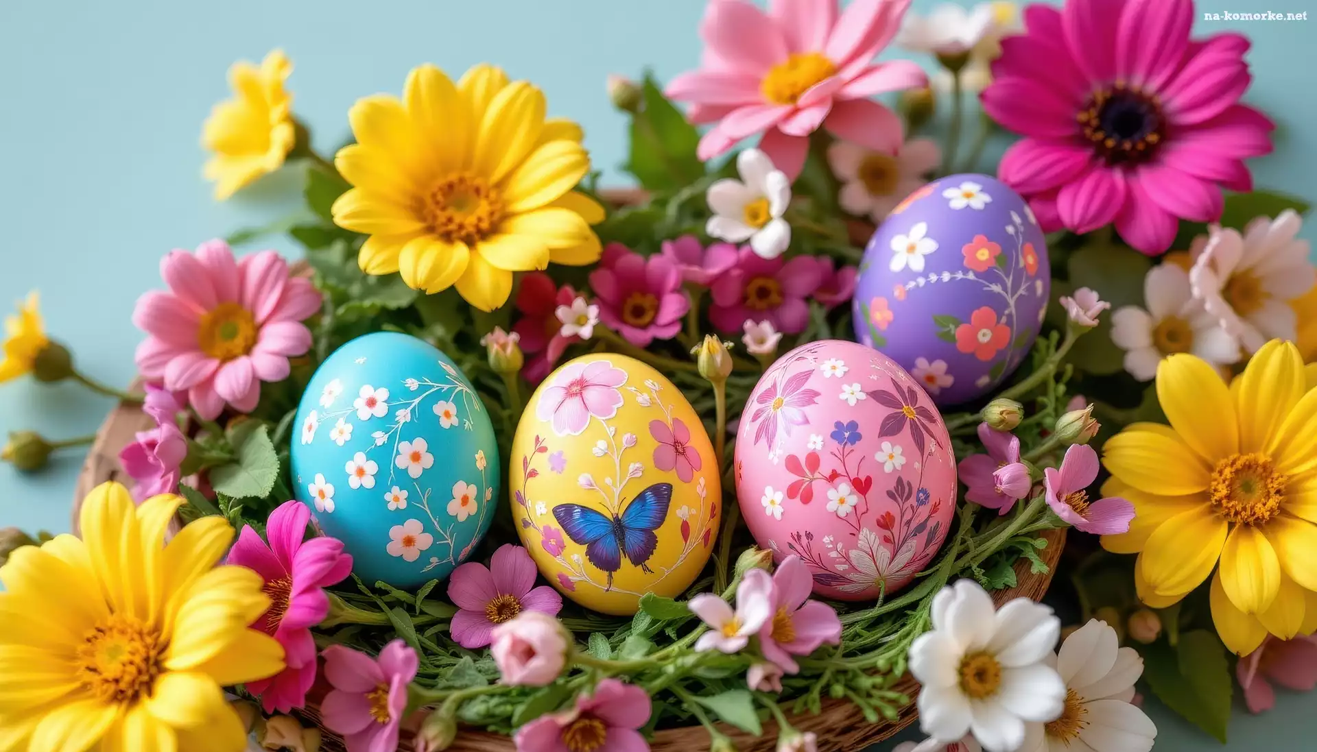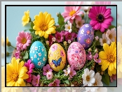 Kwiaty, Wielkanoc, Kolorowe, Grafika AI, Różowe, Żółte, Pisanki na Komórkę