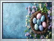 Wielkanoc, Pisanki, Kwiaty, Gniazdko, AI na Komórkę