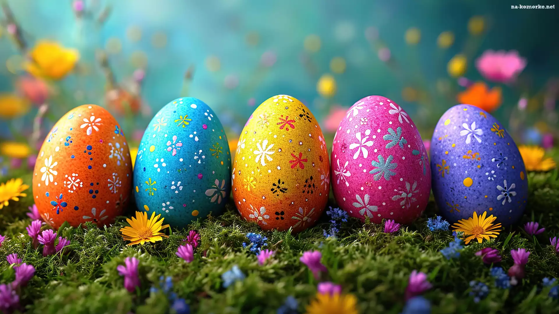 Wielkanoc, Pisanki, Kwiaty, Kolorowe, Mech na Komórkę