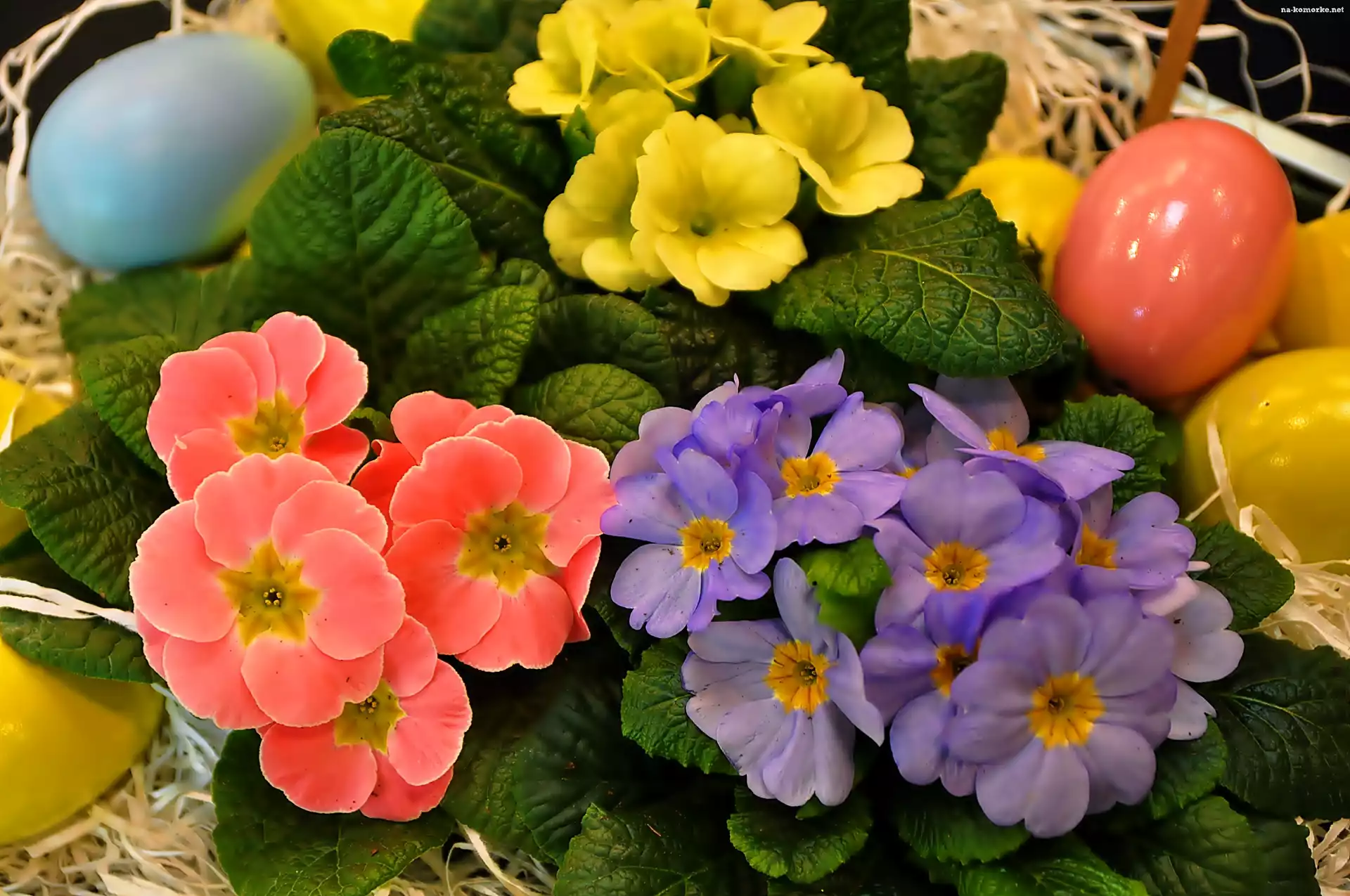 Pisanki, Kolorowe, Wielkanoc, Jajka, Prymule, Kolorowe na Komórkę