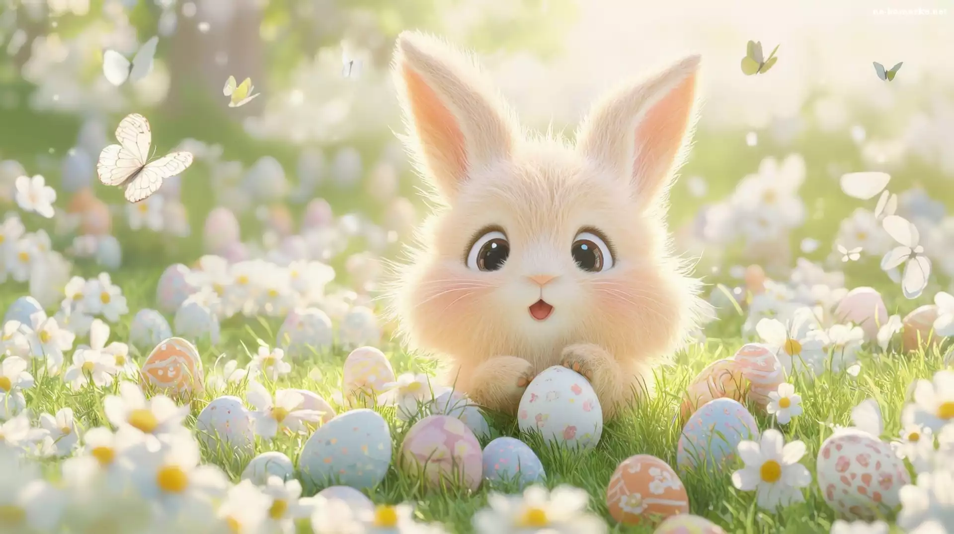 Wielkanoc, Pisanki, Trawa, Królik, Światło na Komórkę