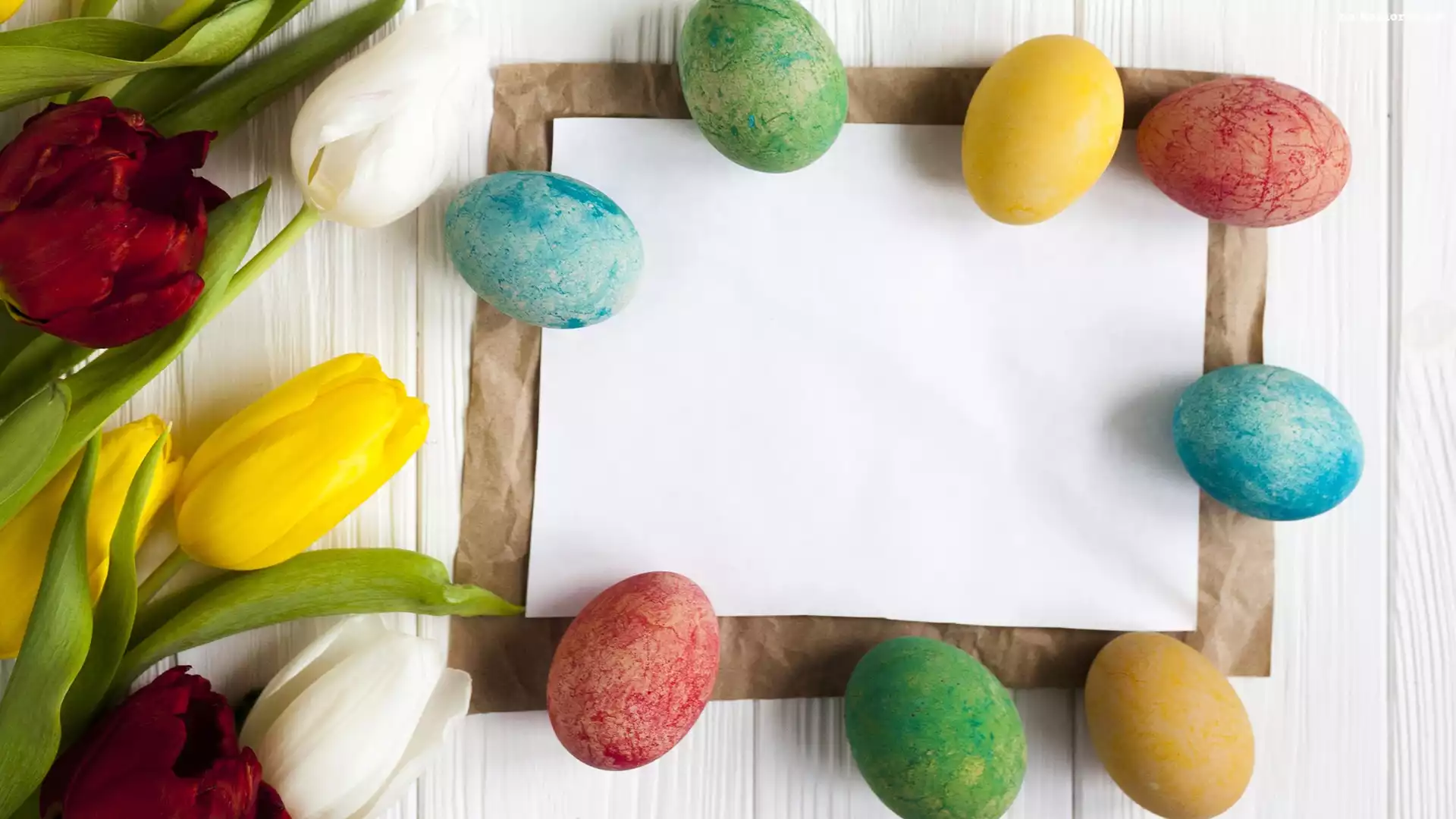 Pisanki, Wielkanoc, Tulipany, Kartka na Komórkę