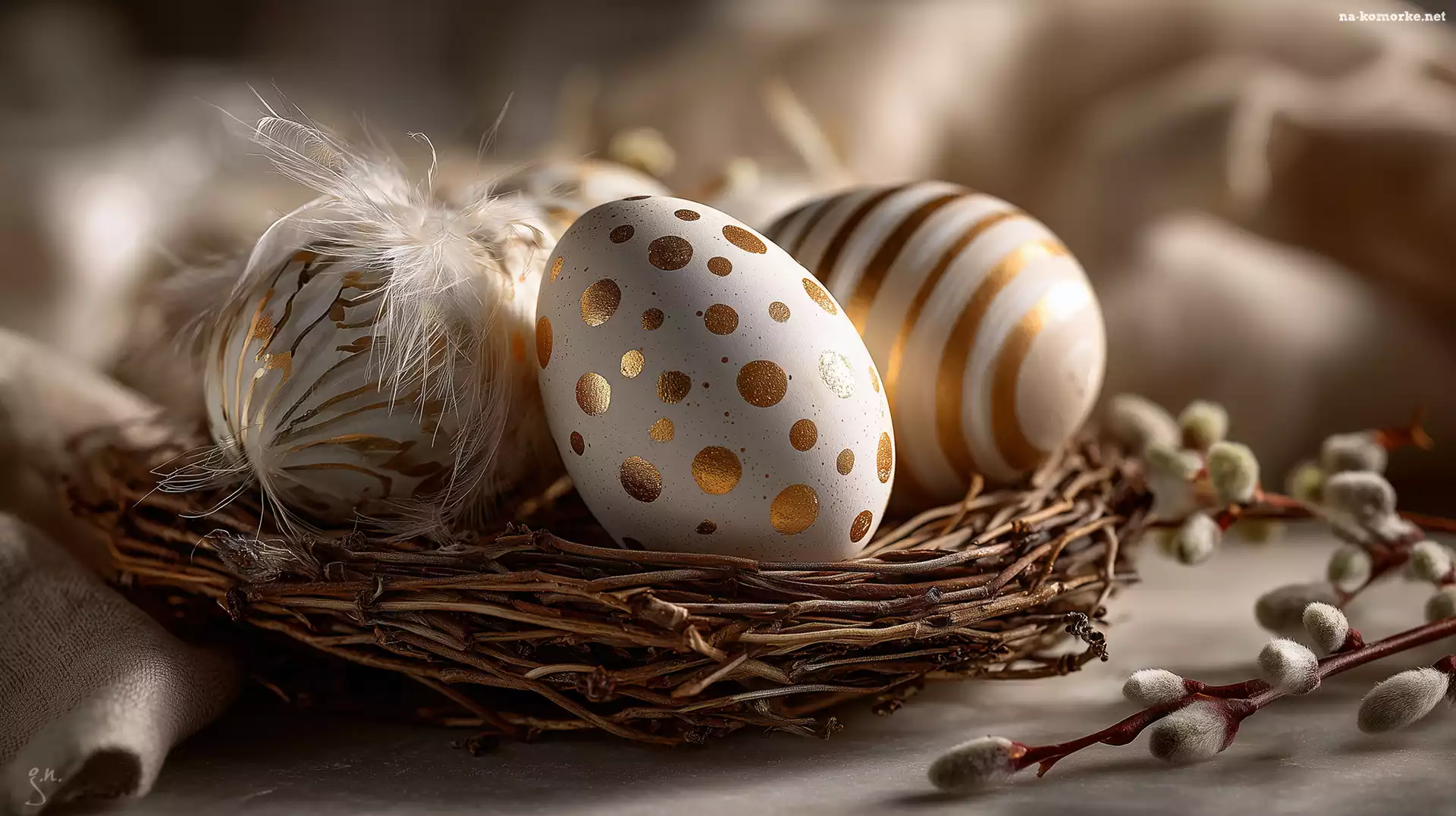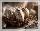 Gniazdko, Bazie, Wielkanoc, Grafika AI, Złote, Wzory, Pisanki na Komórkę