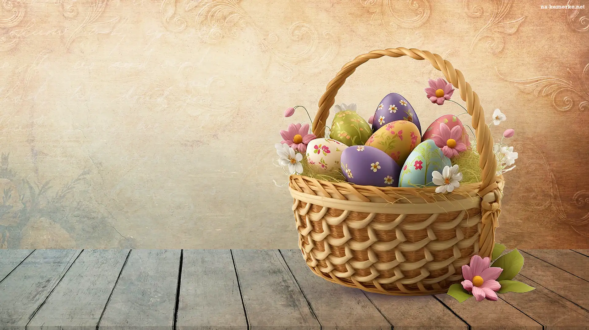 Wielkanoc, Deski, Koszyk, Pisanki na Komórkę
