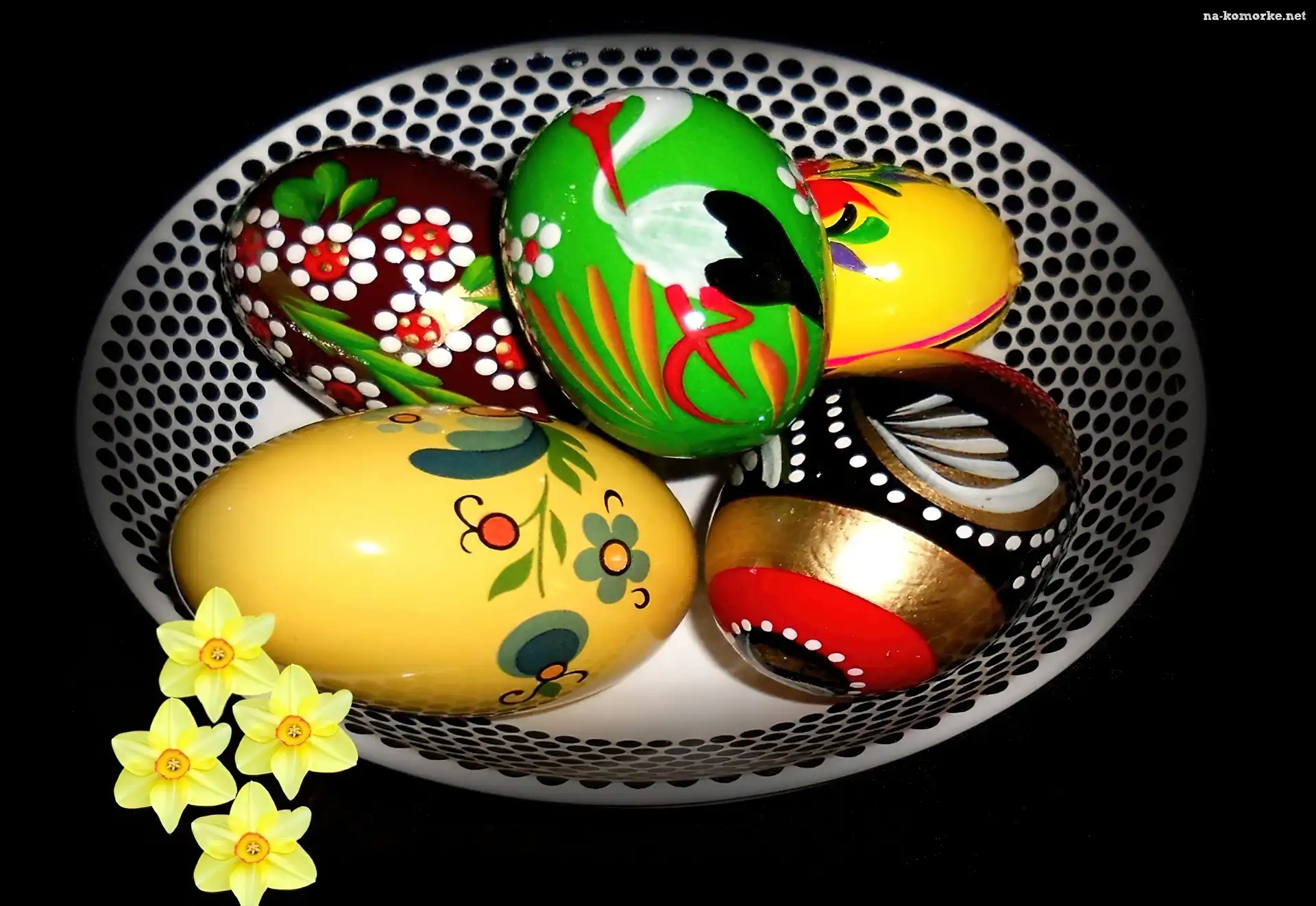 Wielkanocne, Pisanki, Żonkile na Komórkę