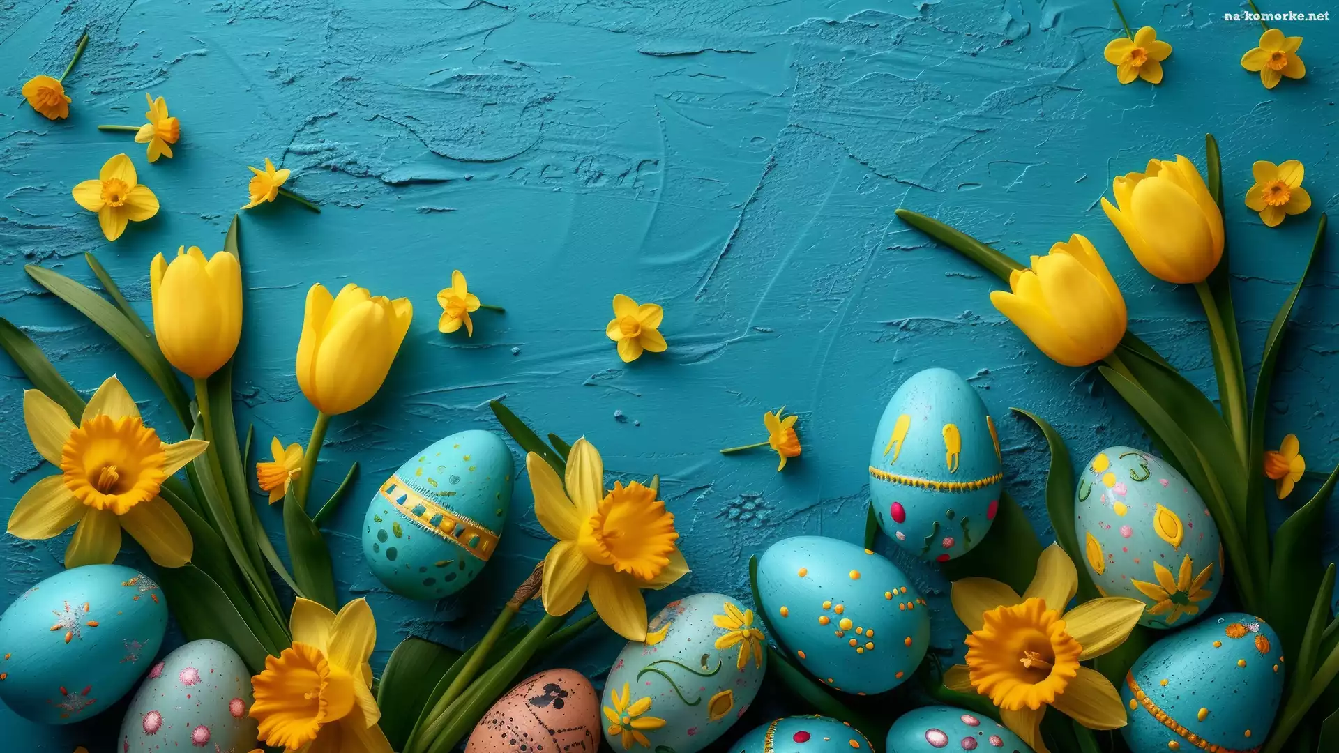 Żonkile, Tulipany, Wielkanoc, Pisanki na Komórkę