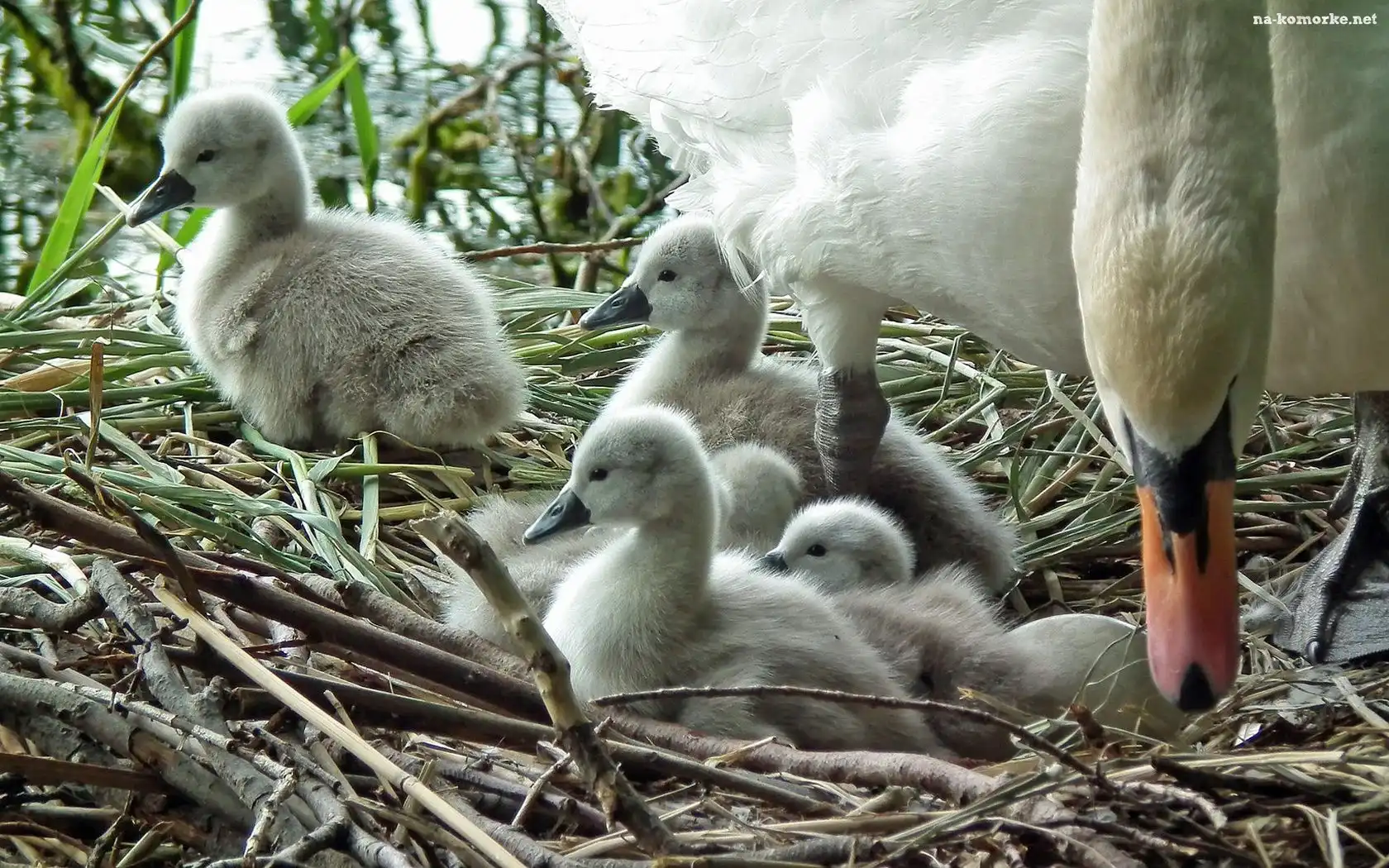 Łabędzie, Pisklęta, Gniazdo na Komórkę