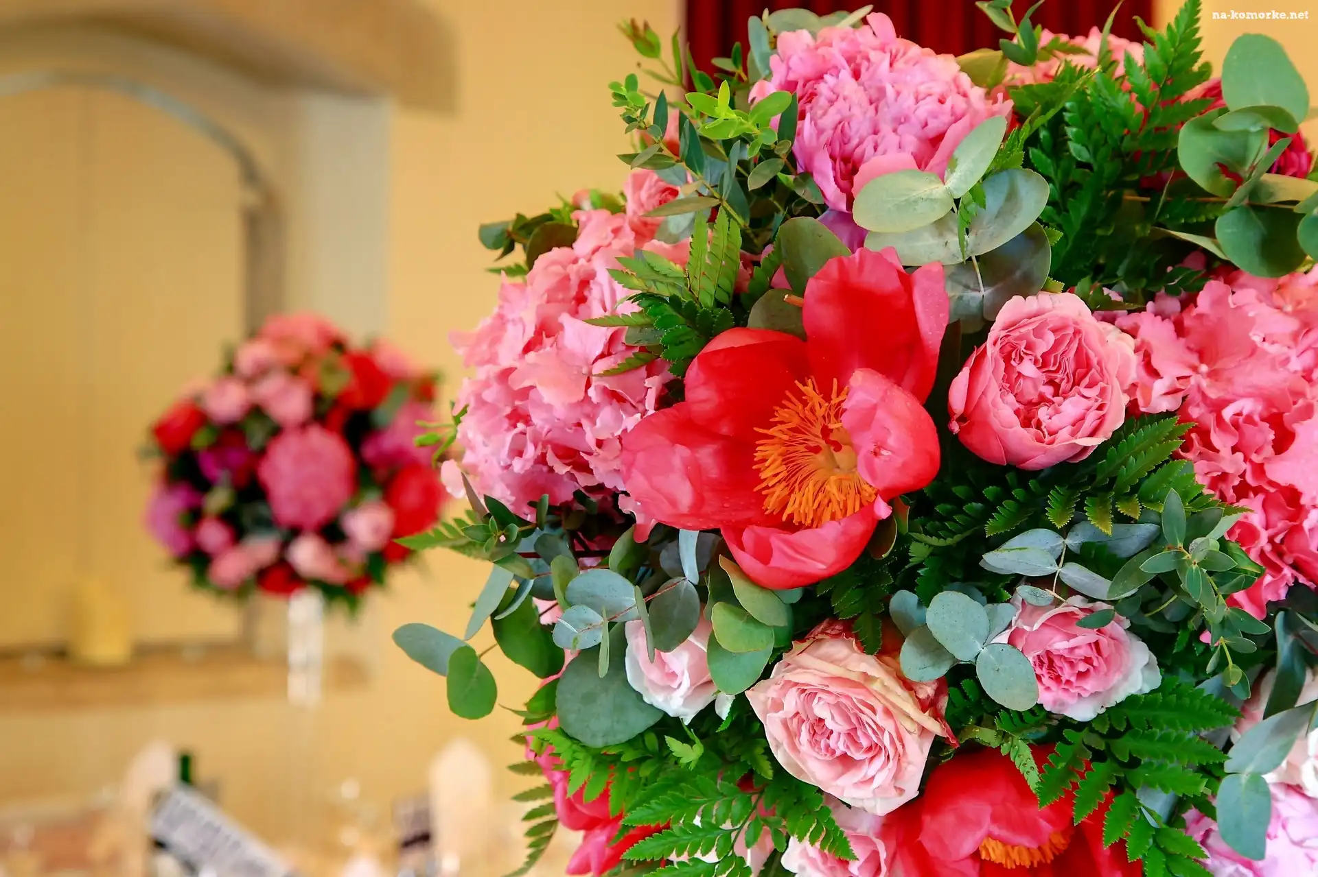 Piwonie, Róże, Bukiet kwiatów na Komórkę