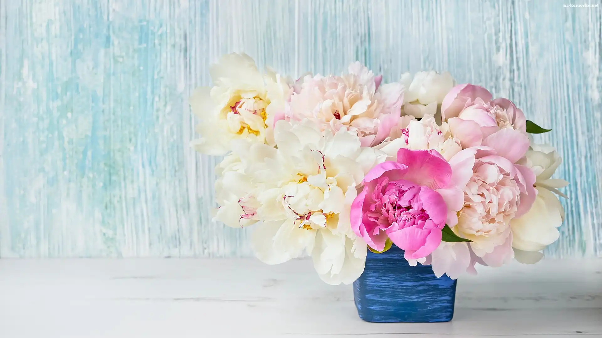Piwonie, Wazonik, Bukiet, Niebieski na Komórkę
