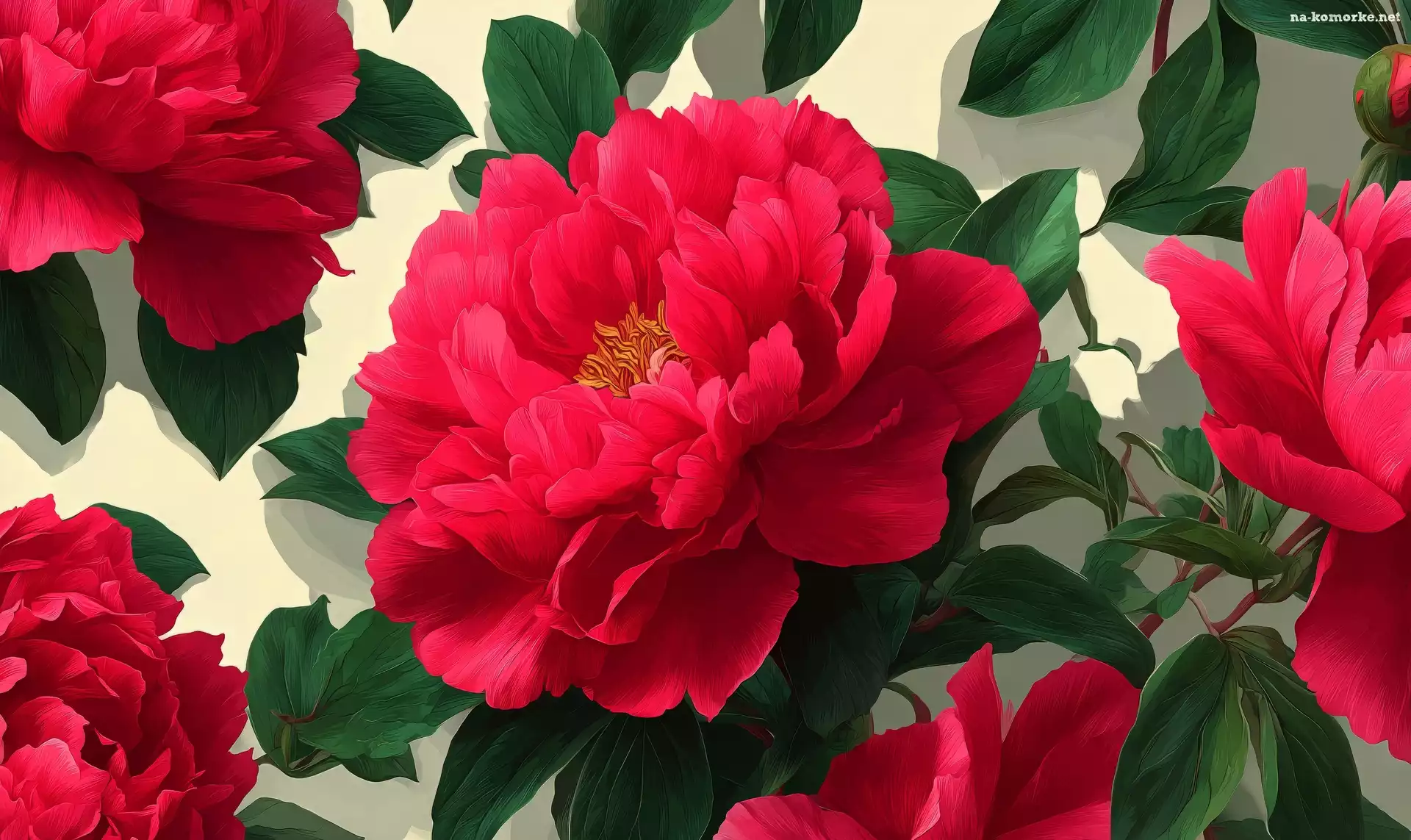 Liście, Grafika, Czerwone, Piwonie na Komórkę