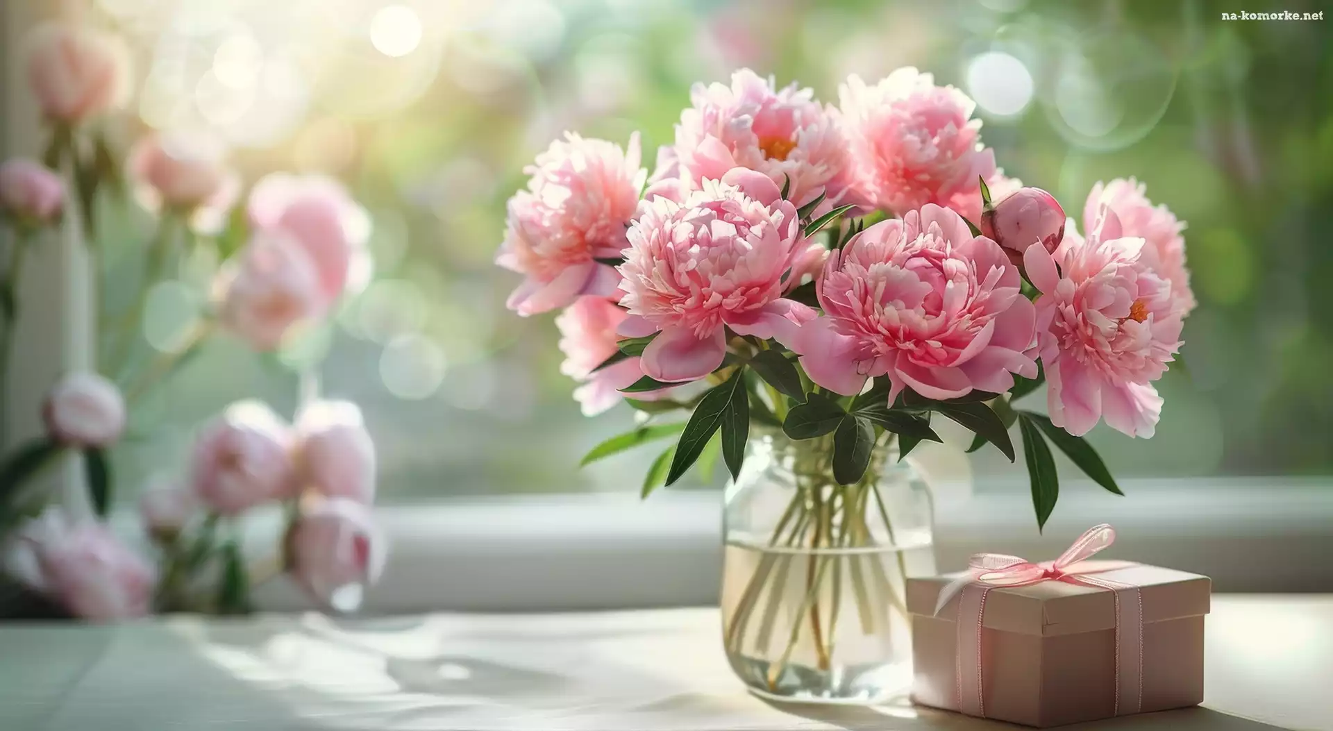 Bukiet, Piwonie, Wazon, Róże, Prezent na Komórkę