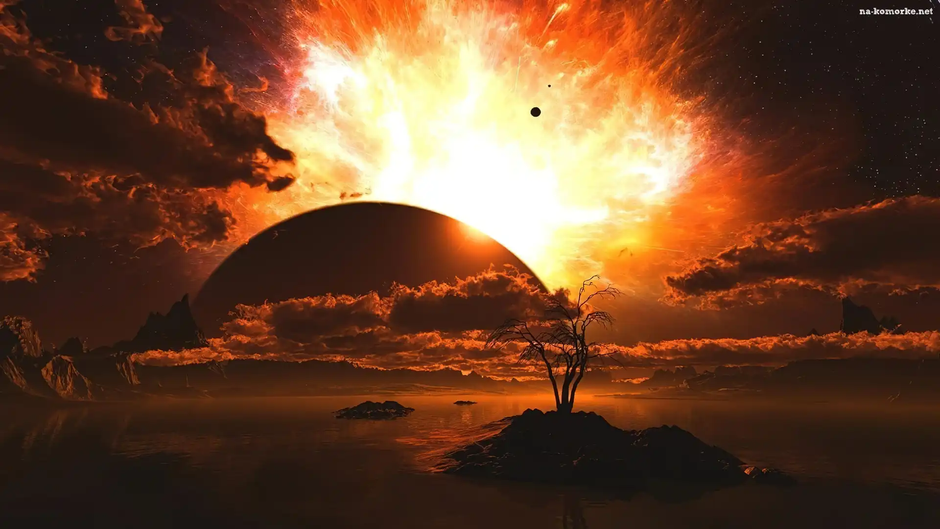 Planeta, Chmury, Wybuch, Wysepka na Komórkę
