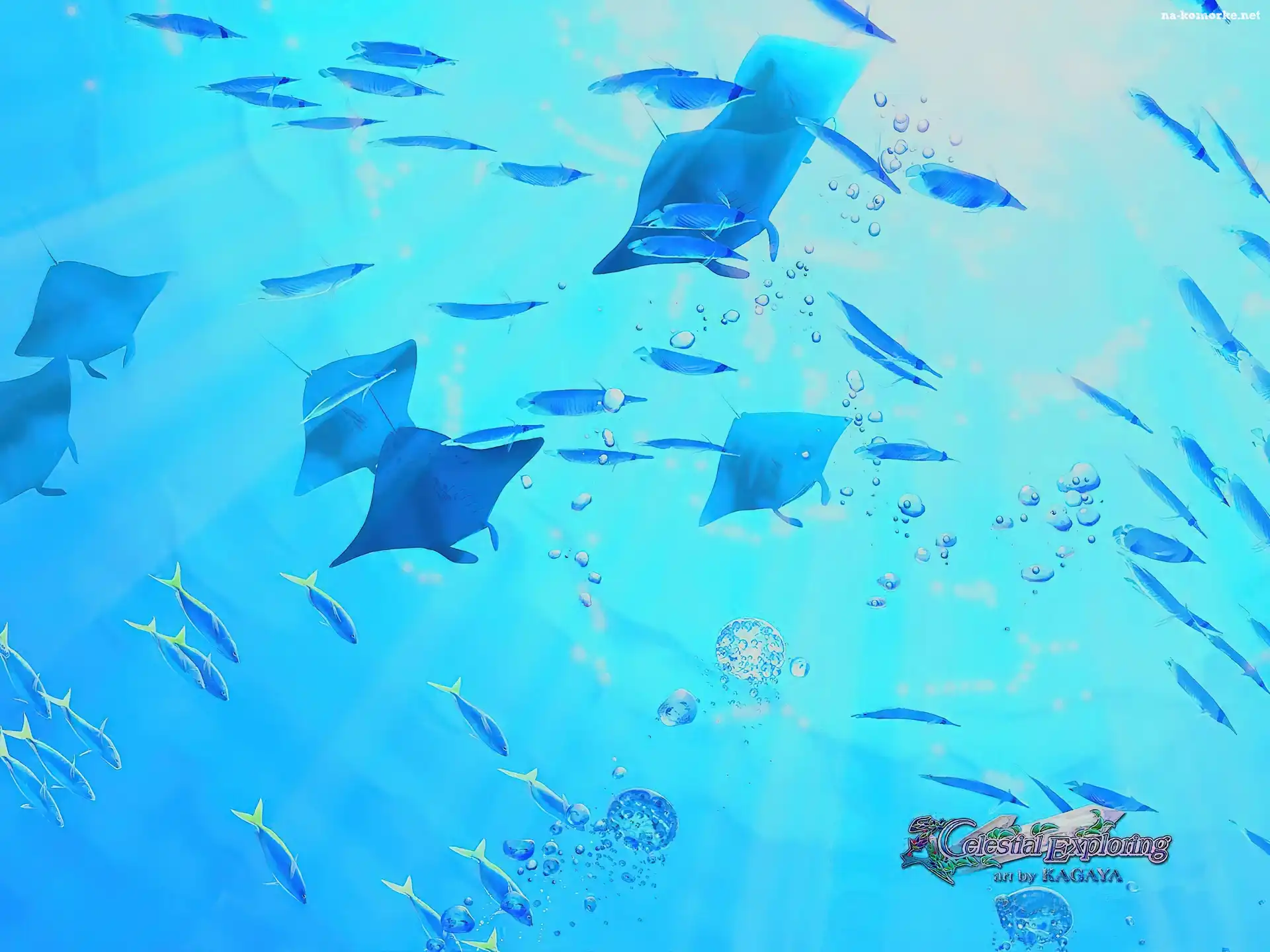 Światło, Grafika, Kagaya, Płaszczki, Ryby na Komórkę