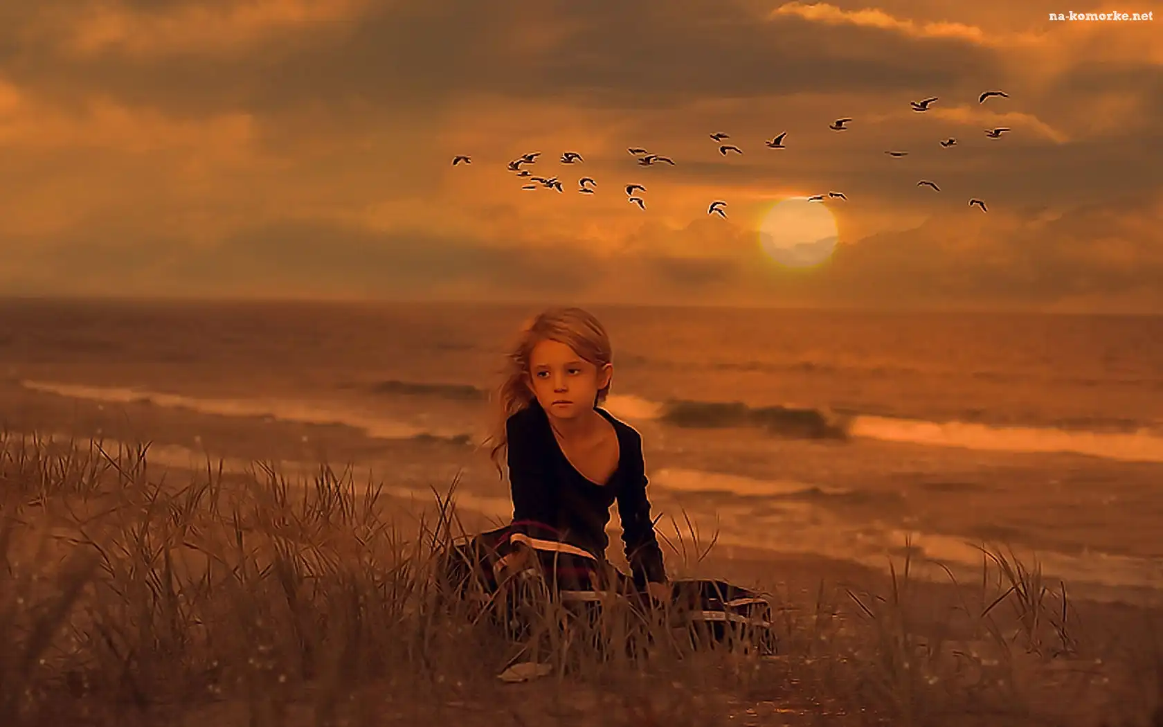 Dziewczynka, Plaża, Ptaki na Komórkę
