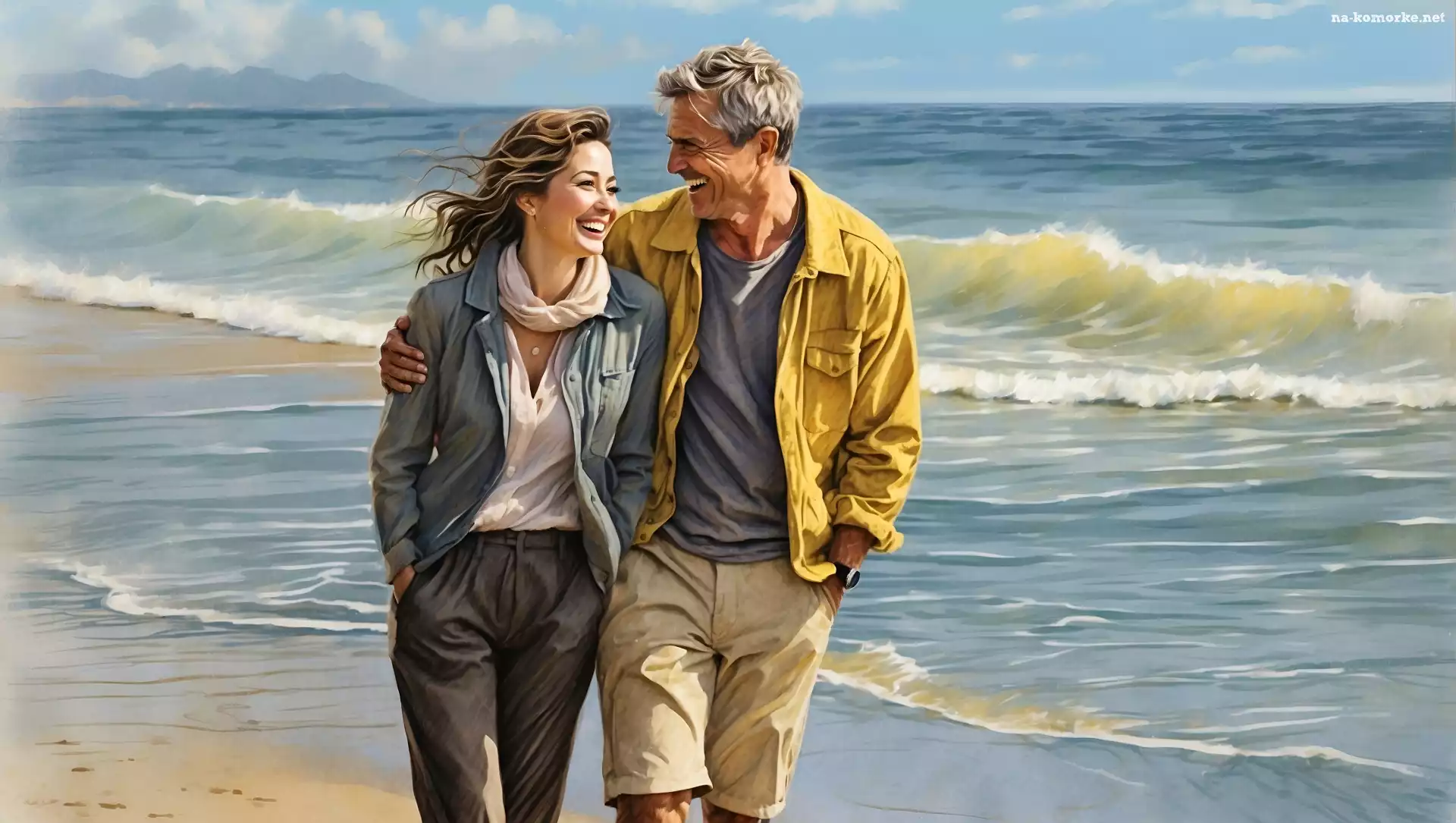 Morze, Mężczyzna, Wakacje, Plaża, Para, Kobieta na Komórkę
