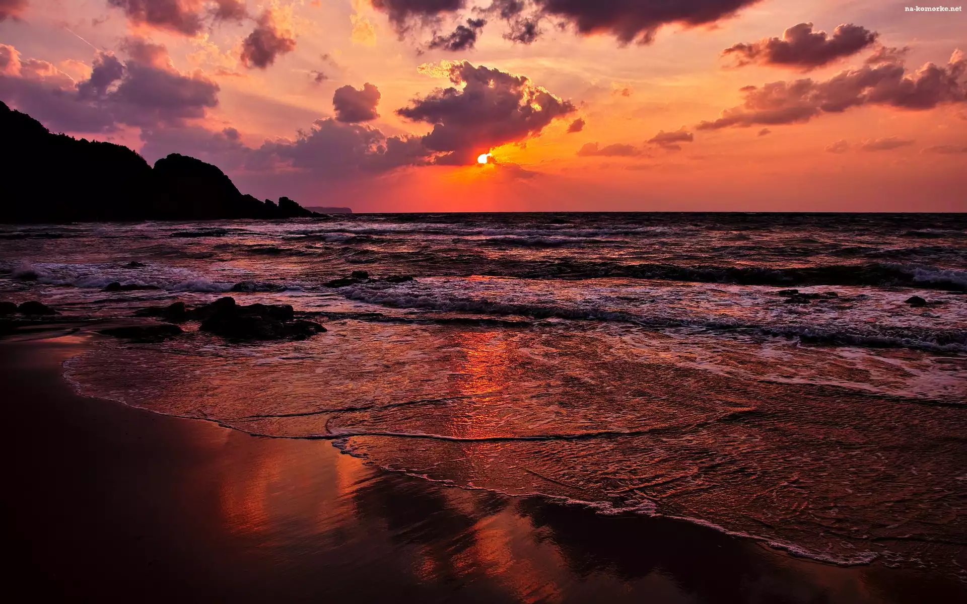 Plaża, Zachód, Słońca, Morze, Fale na Komórkę
