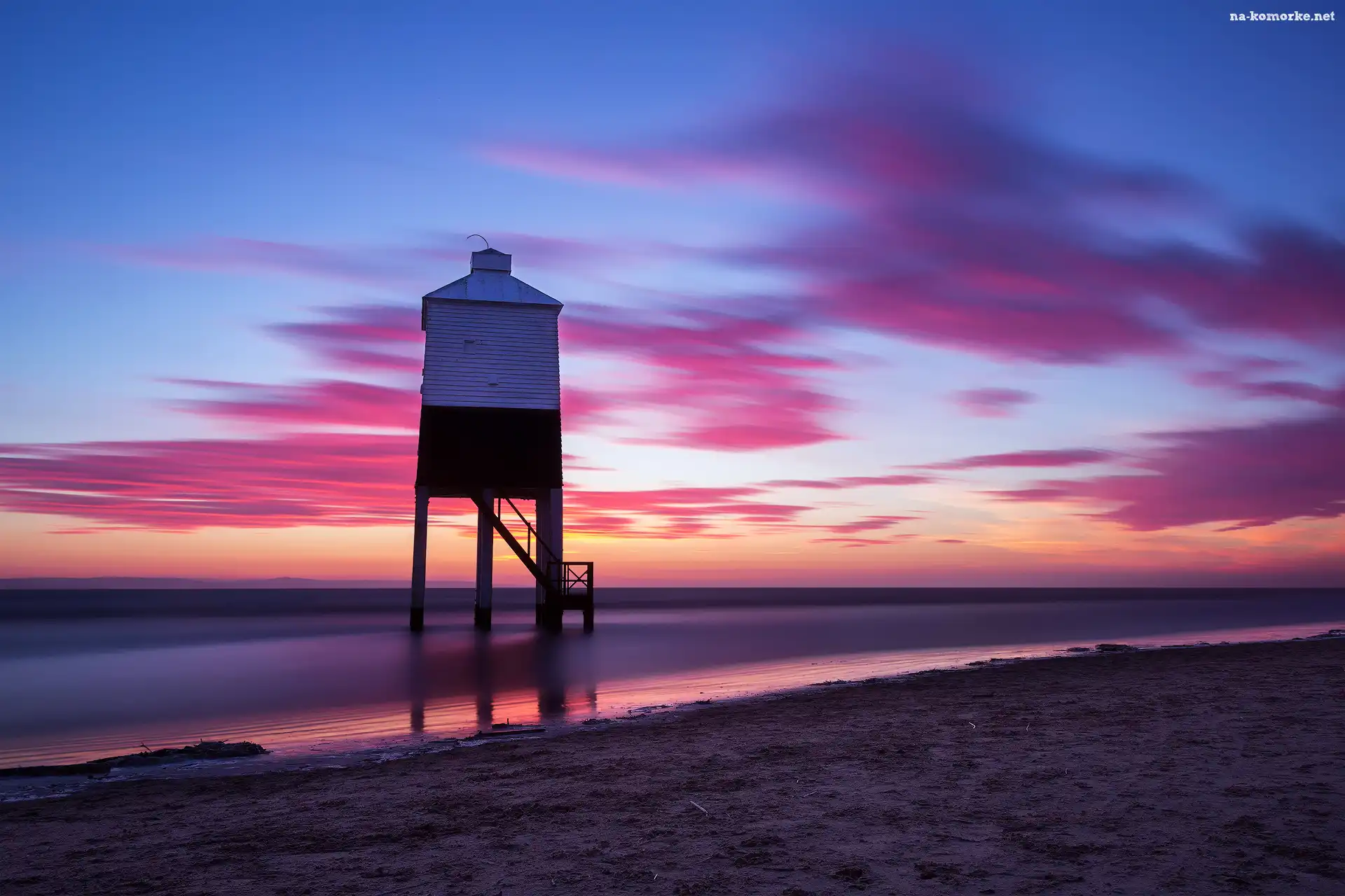 Plaża, Morze, Niebo, Domek widokowy, Chmury na Komórkę