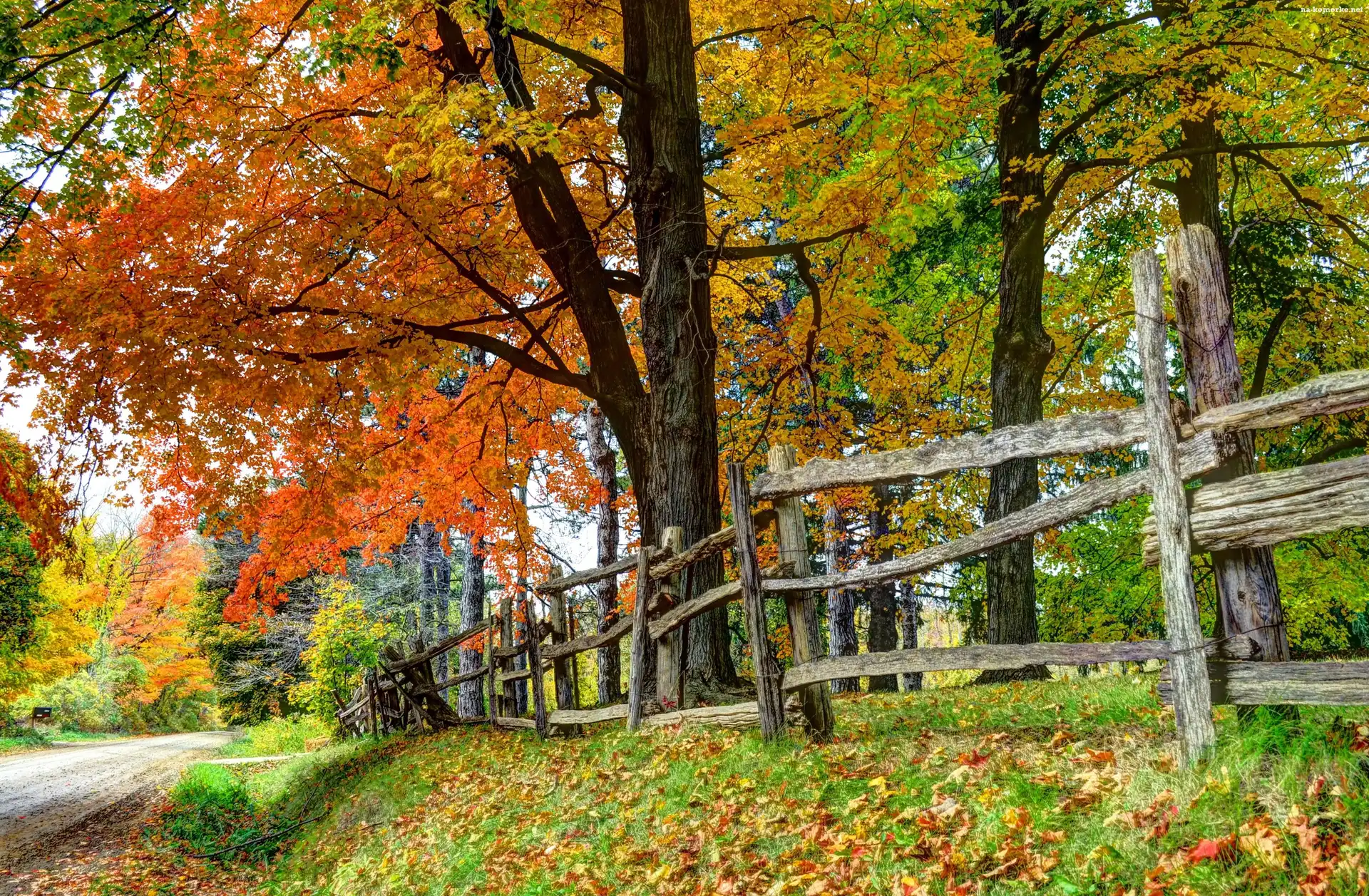 Płot, Droga, Jesień, Drzewa na Komórkę