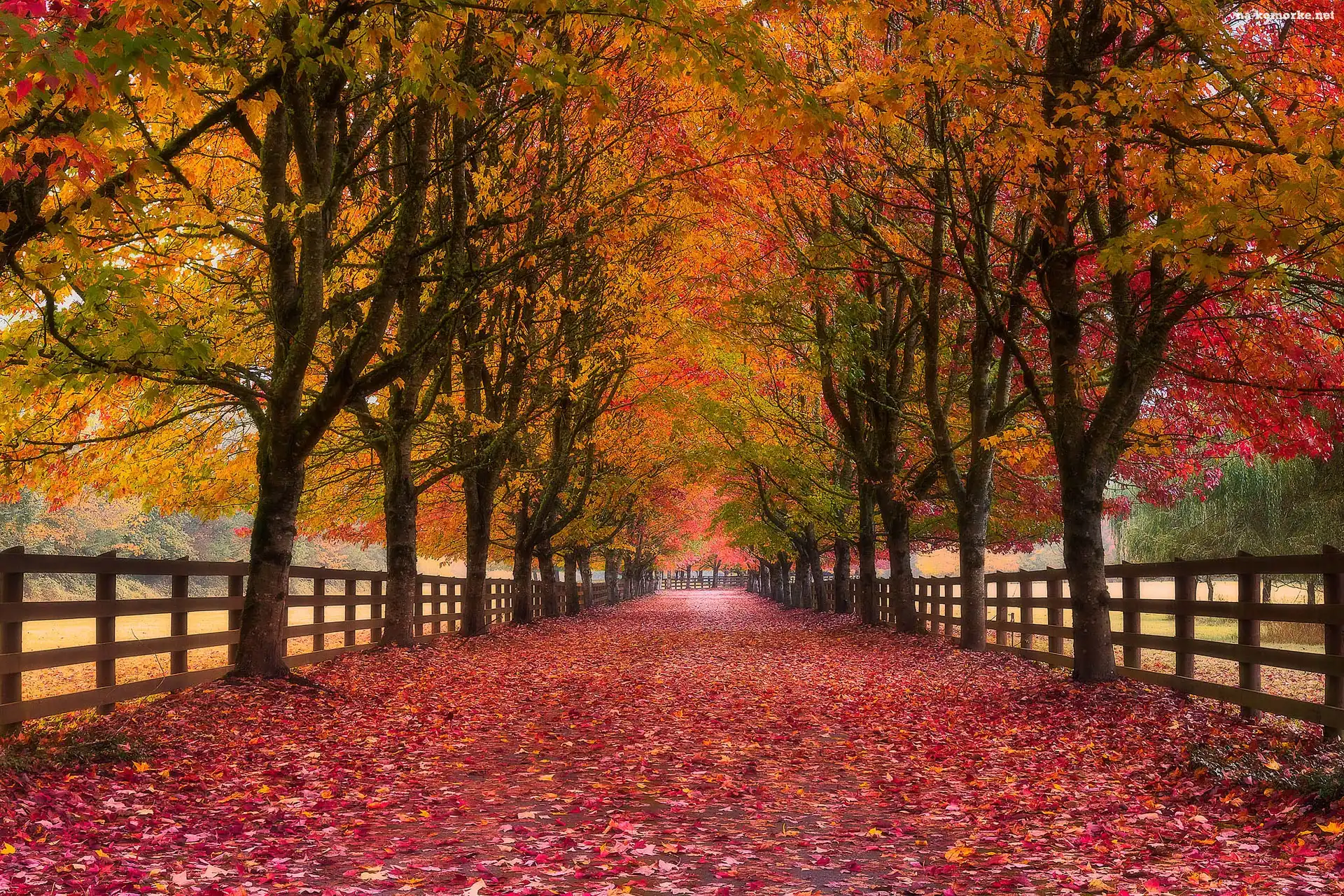 Jesień, Płot, Ogrodzenie, Park, Alejka, Drzewa, Liście na Komórkę