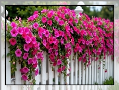 Biały, Różowe, Wiszące, Płot, Petunie, Kwiaty na Komórkę