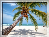 Orzechy kokosowe, Morze, Pochylona, AI, Palma, Plaża na Komórkę