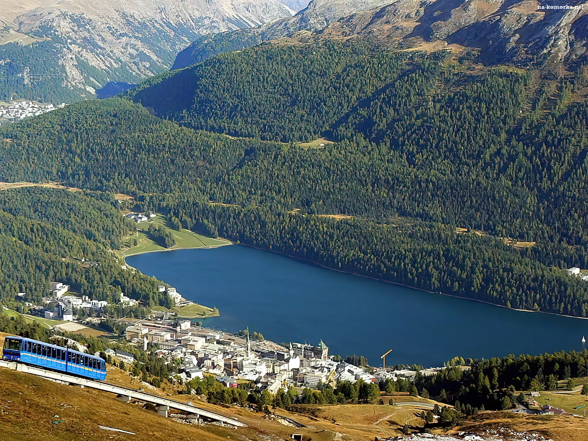 Pociąg, Engadine, St.Moritz, Szwajcaria, Góry na Komórkę