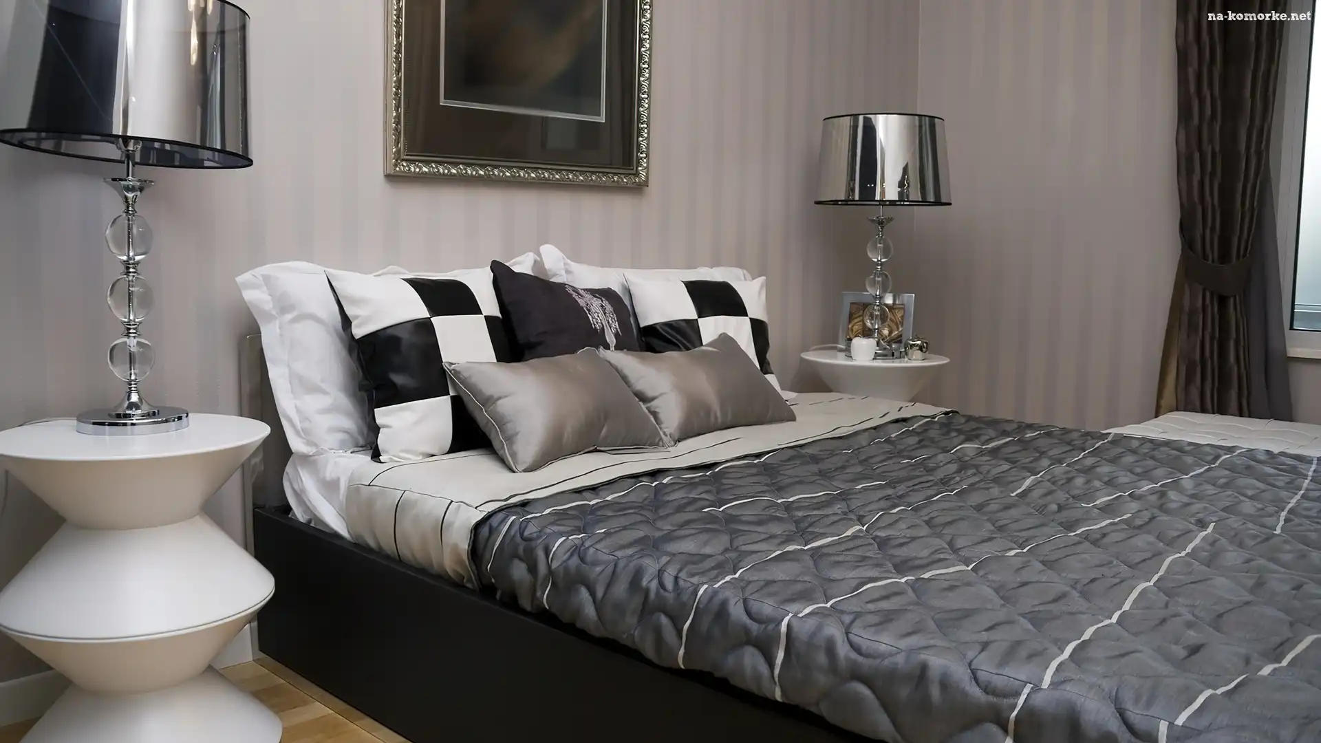 Poduszeczki, Łóżko, Sypialnia, Obraz, Nakrycie, Lampy na Komórkę