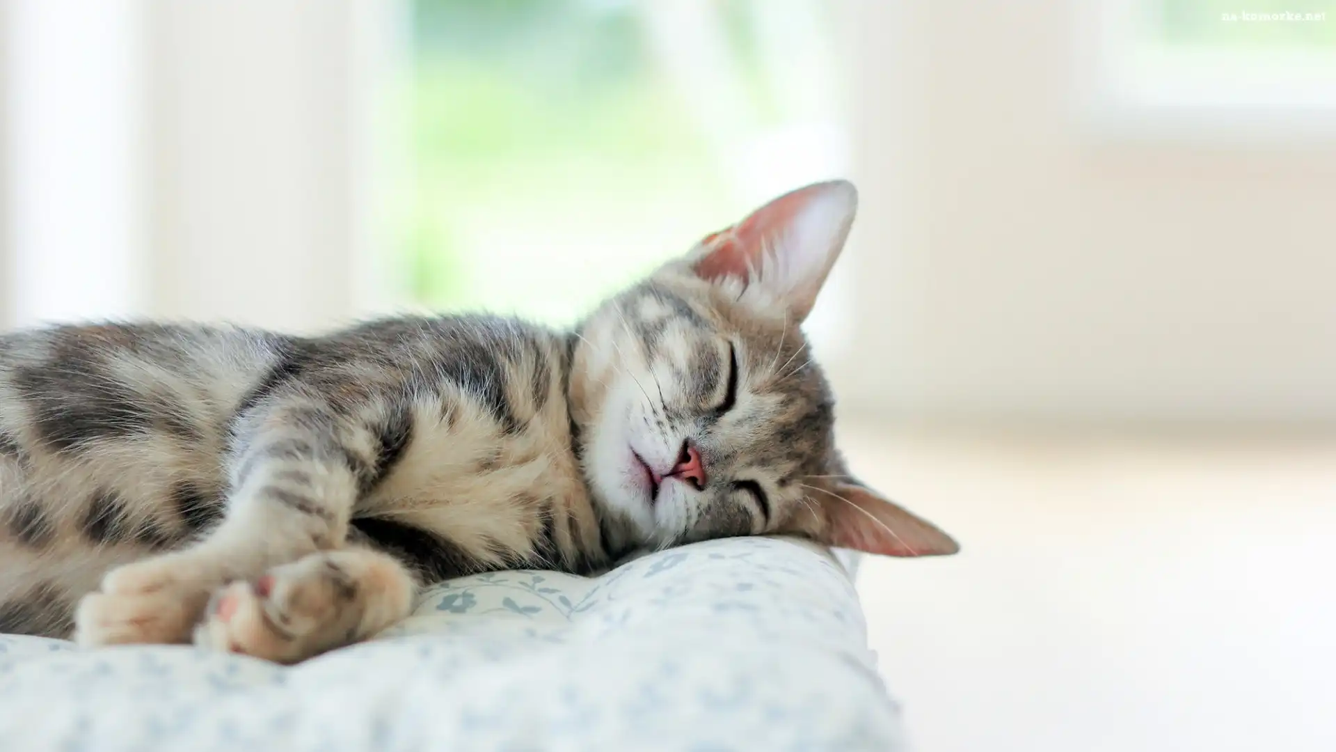 Poduszka, Śpiący, Mały, Bury, Kot na Komórkę