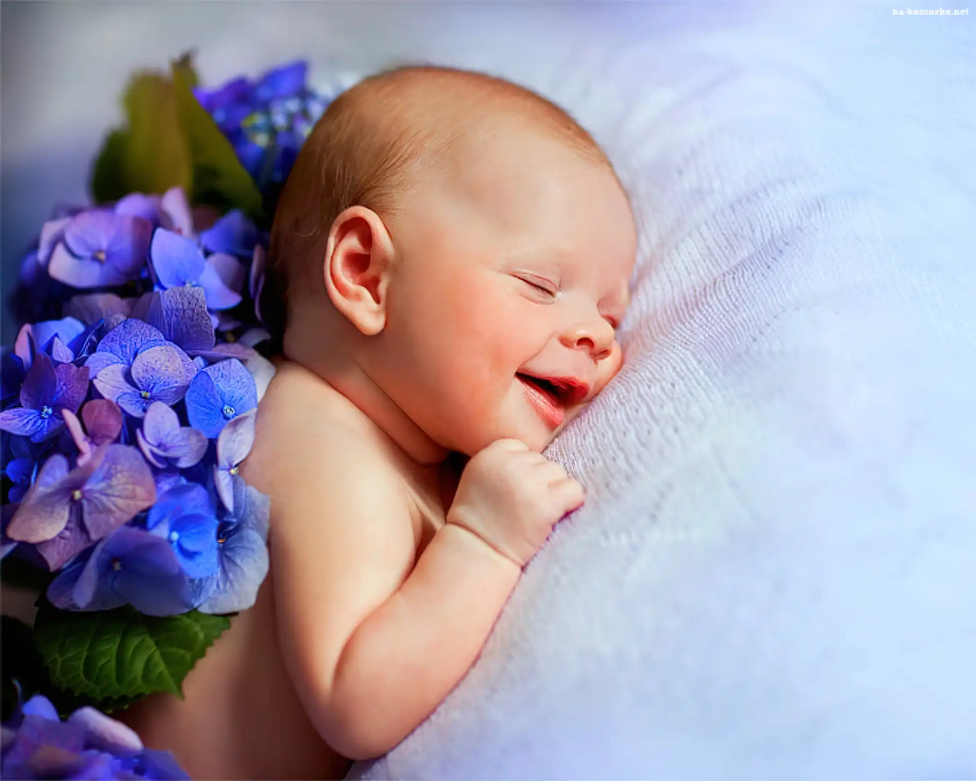 Dziecko, Poduszka, Kwiaty na Komórkę