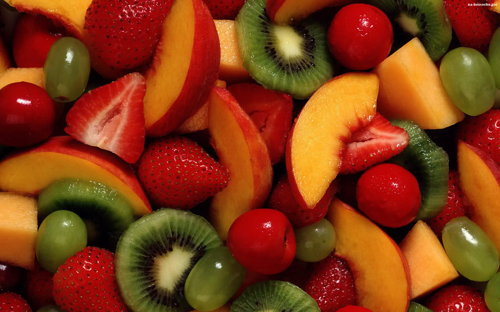 Kiwi, Pokrojone, Sałatka Owocowa, Truskawki, Brzoskwinie, Winogrona na Komórkę