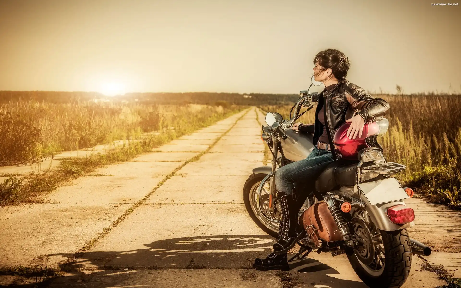 Pola, Motocykl, Dziewczyna, Słońca, Droga, Promienie na Komórkę