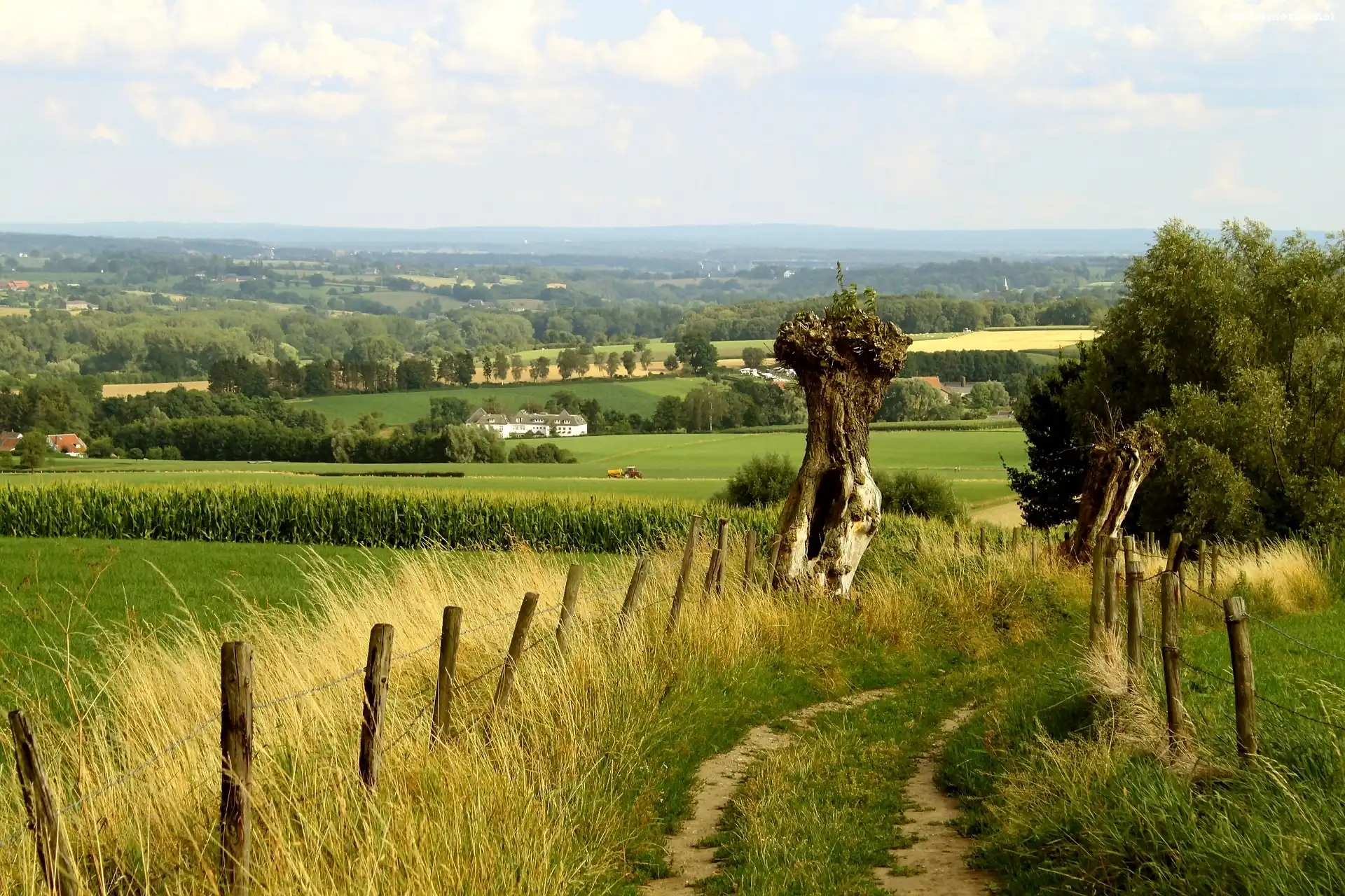 Pola, Droga, Polna, Krajobraz, Drzewa, Wieś na Komórkę
