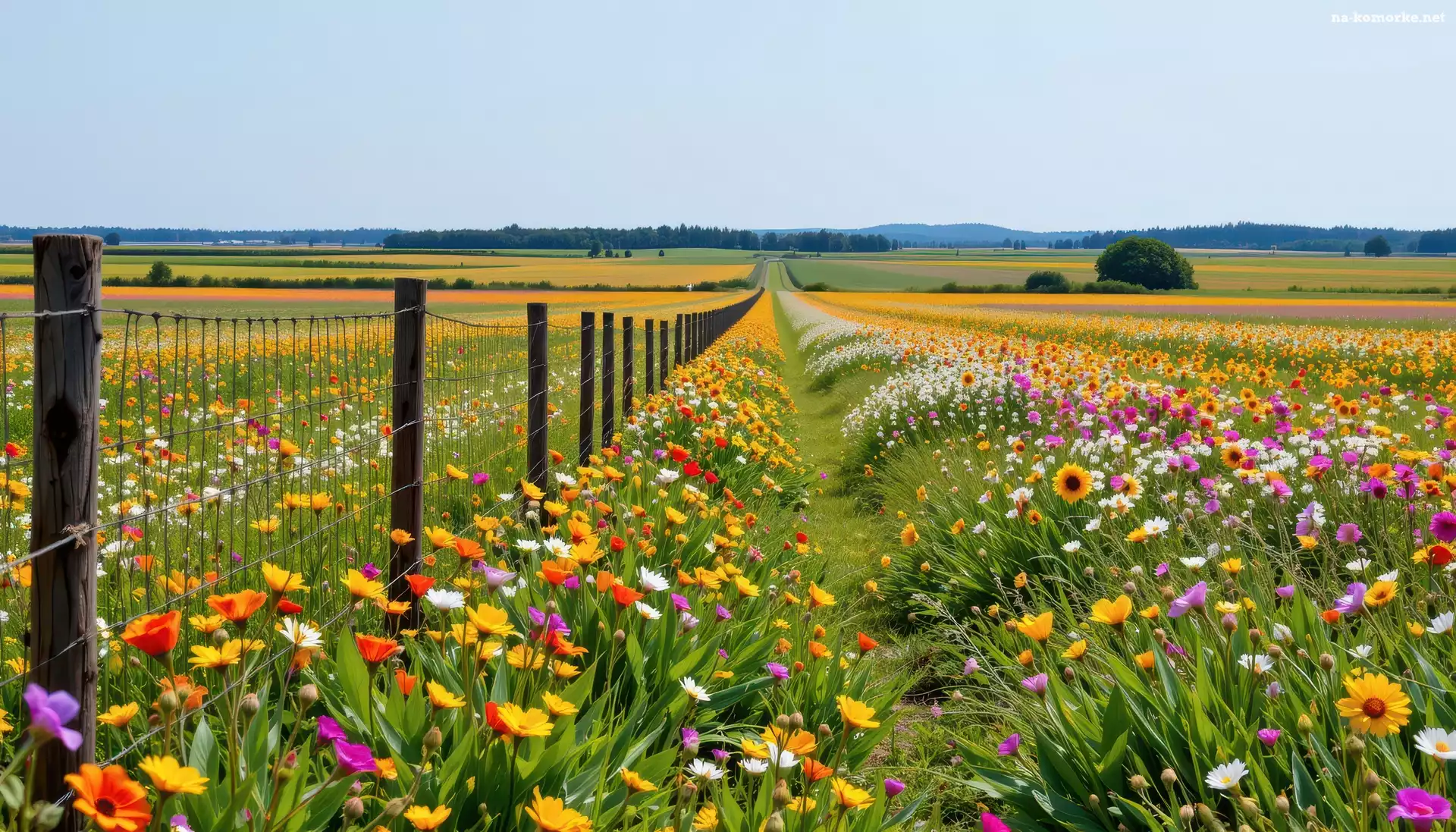 Kwiaty, Ogrodzenie, Łąka, Pola na Komórkę
