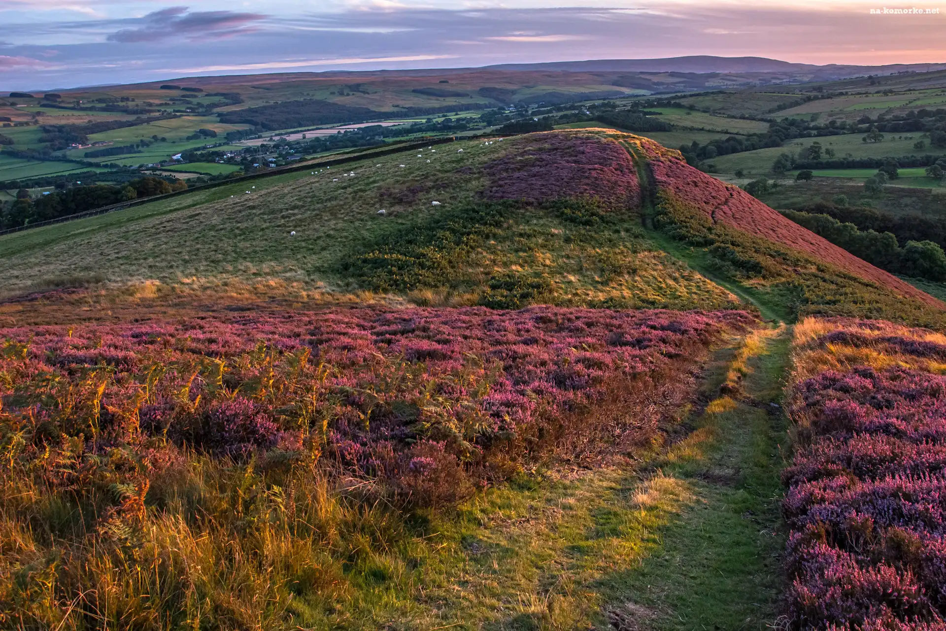 Wzgórza, Pola, Łąki, Ścieżka, Wrzosowisko na Komórkę