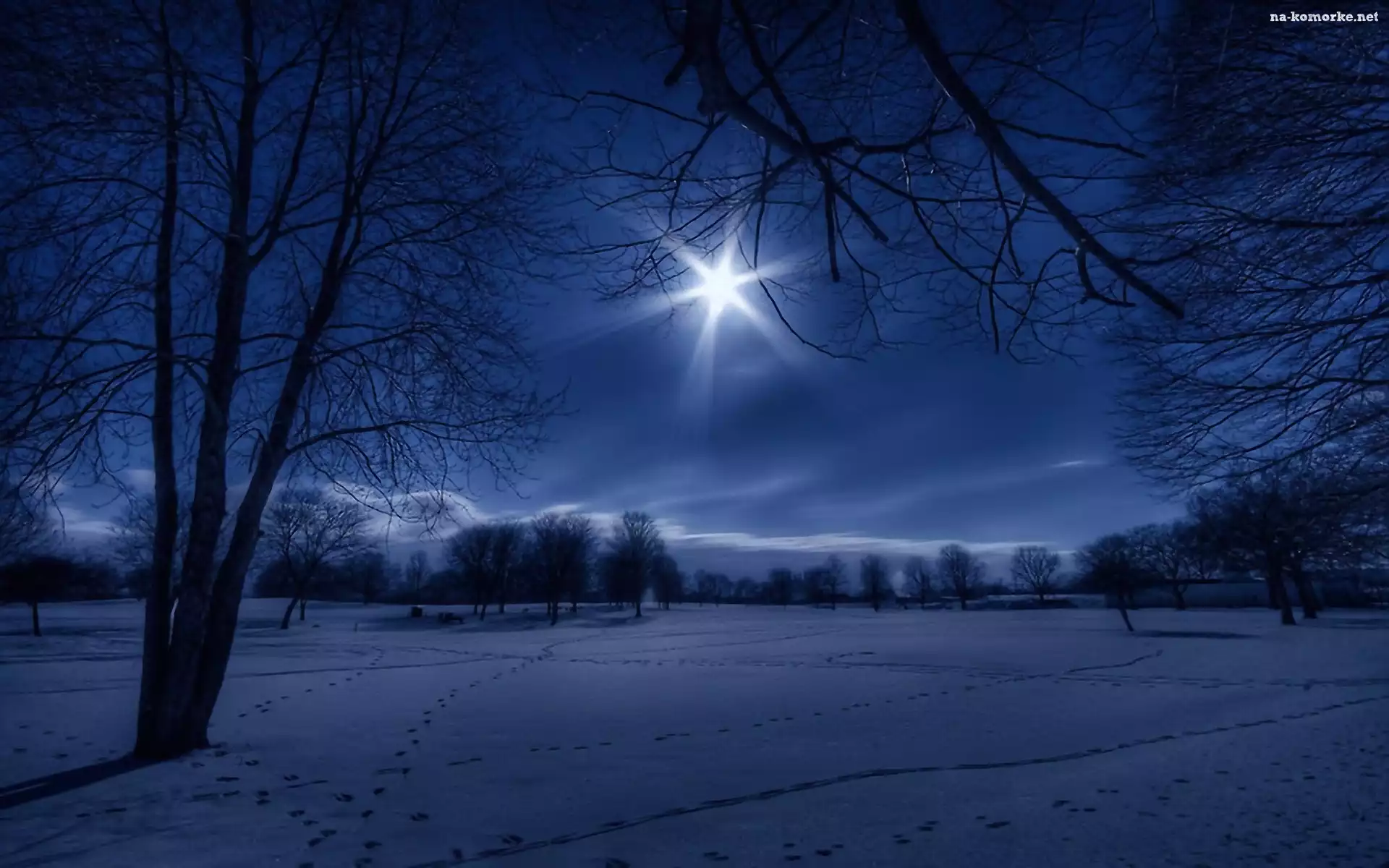 Pola, Zima, Drzewa, Promienie Słońca na Komórkę