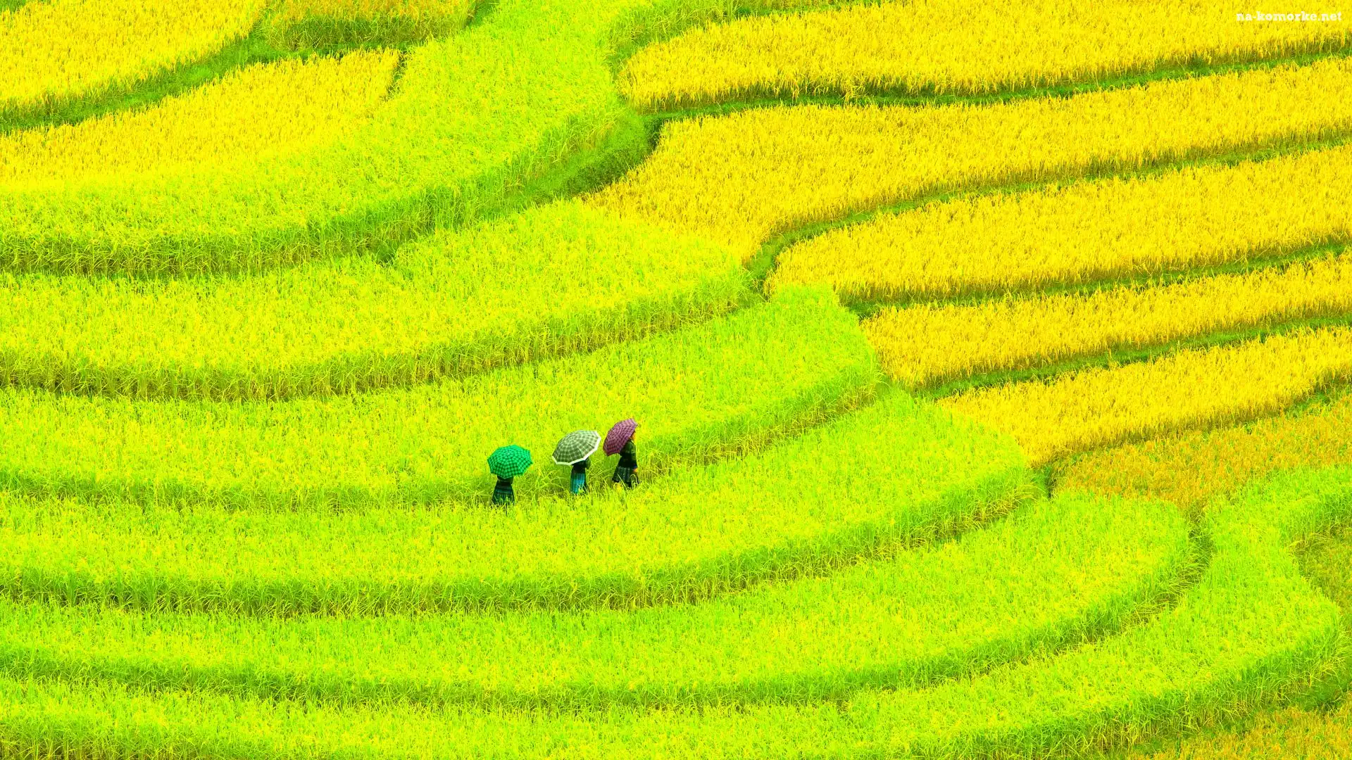 Pola, Parasolki, Tarasy rolne, Kobiety na Komórkę
