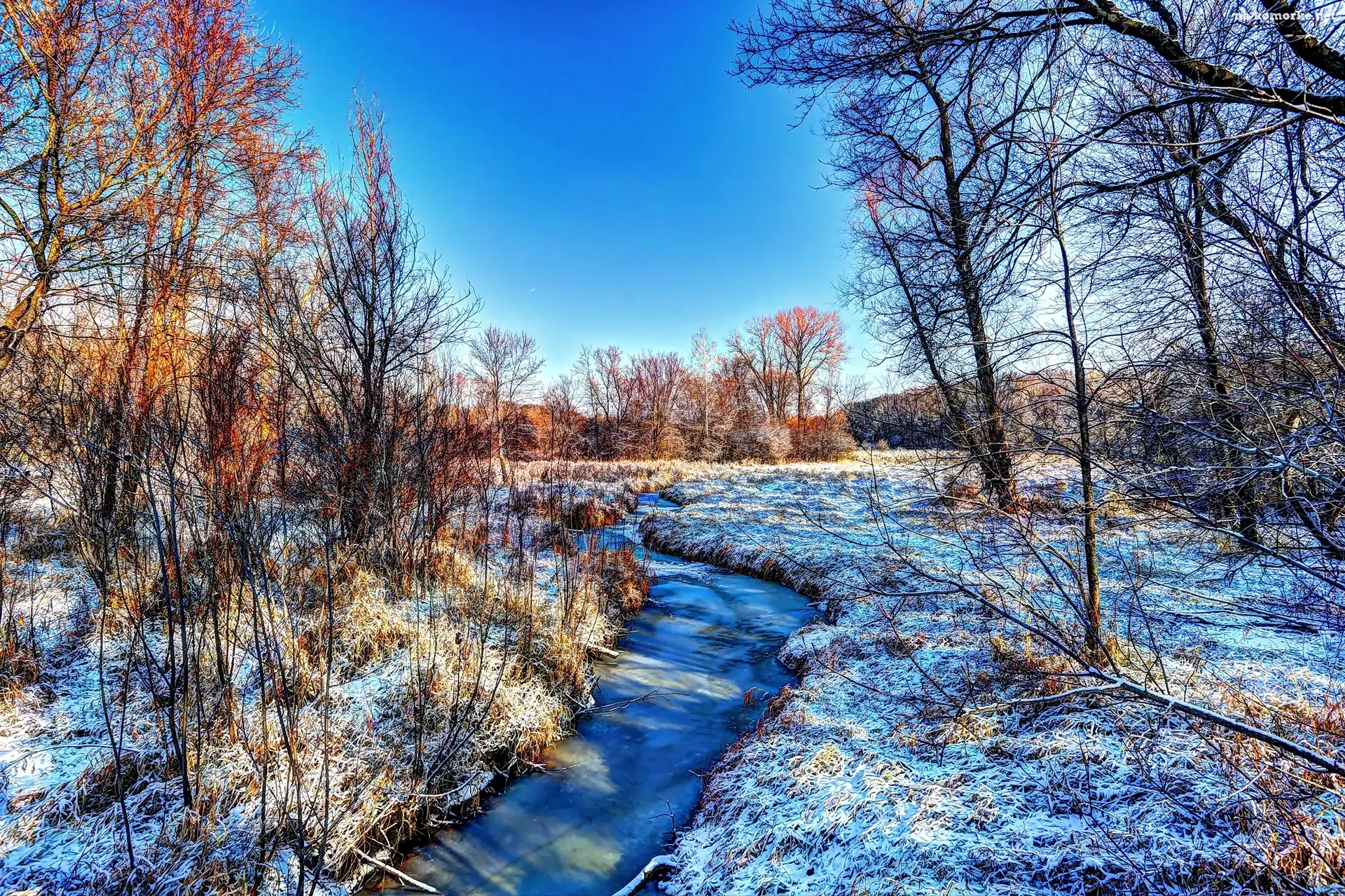 Polana, Zima, Las, Rzeczka, Strumyk na Komórkę