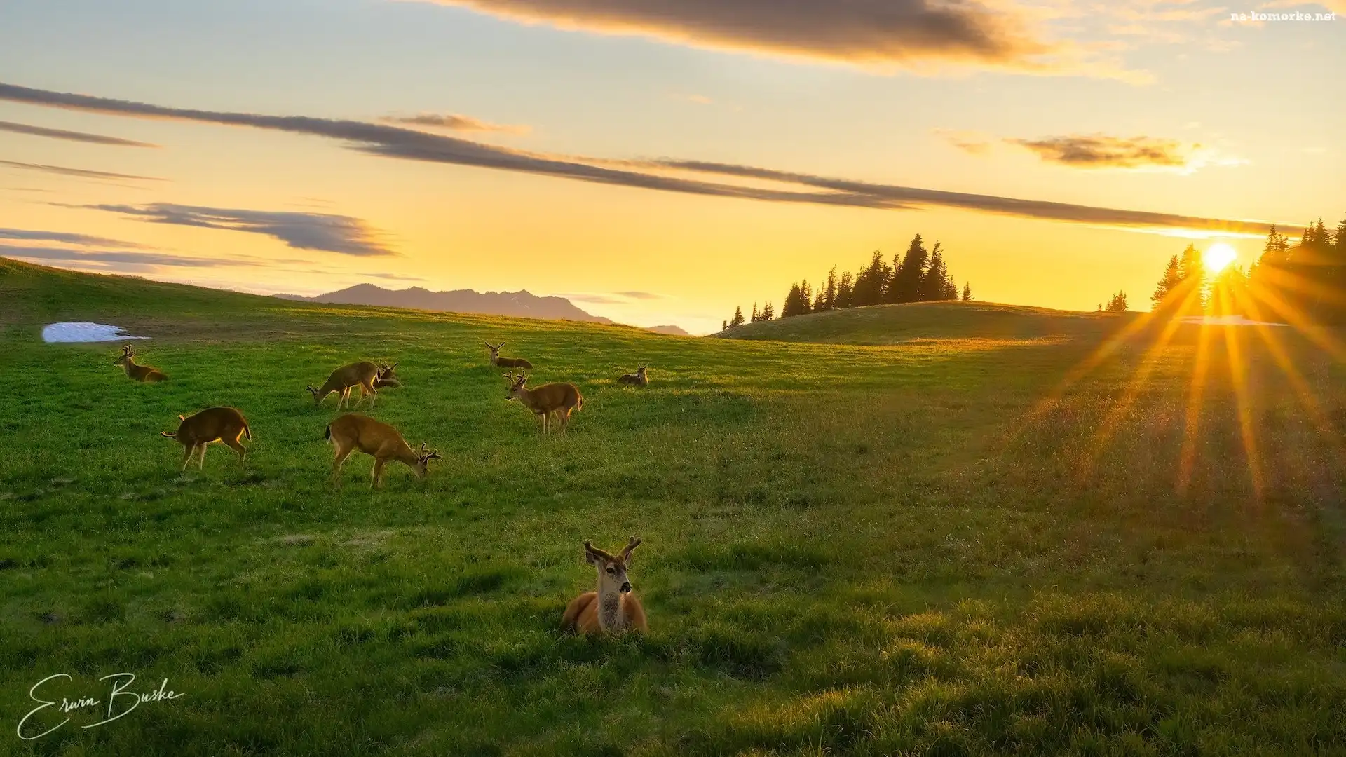Wschód słońca, Stan Waszyngton, Polana, Stany Zjednoczone, Promienie słońca, Jelonki, Sarny, Park Narodowy Olympic na Komórkę |