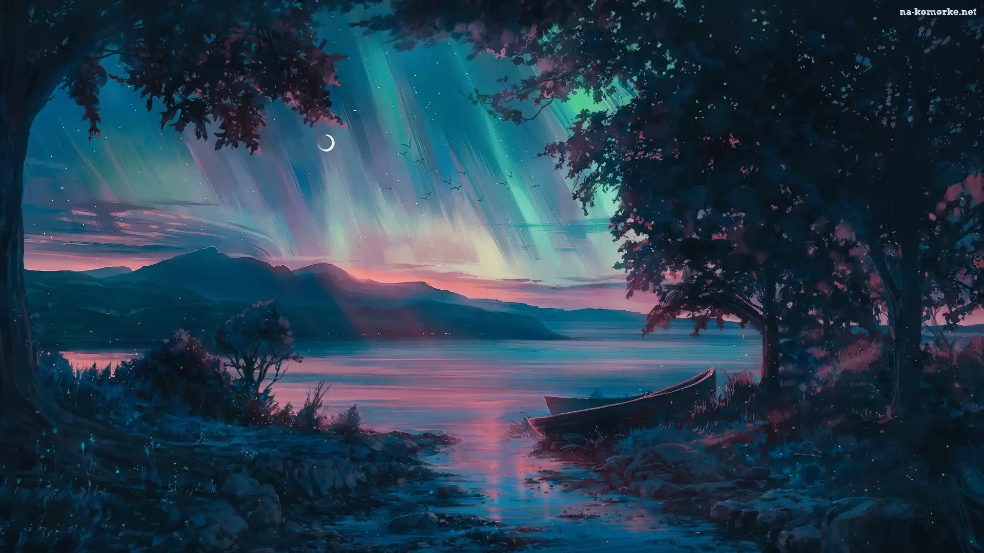 Jezioro, Księżyc, Łódka Zima, Drzewa, Zorza polarna Zorza, Niebo, Polarna, Jezioro Góry, Gwiazdy, Drzewa, Śnieg Młode, Las, Zakręcone, Drzewo Zorza Polarna Droga, Grafika, Drzewa, Zorza polarna, Las, Zima Góry, Krzew, Jezioro Góry, Błękitne, Jezioro Wzorki, Czerwone, Serce, Białe, Różne Jezioro, Odbicie, Chmur Jezioro, Odbicie, Lustrzane Kobieta, Kosmos, Broń Góry, Drzewa, Morze