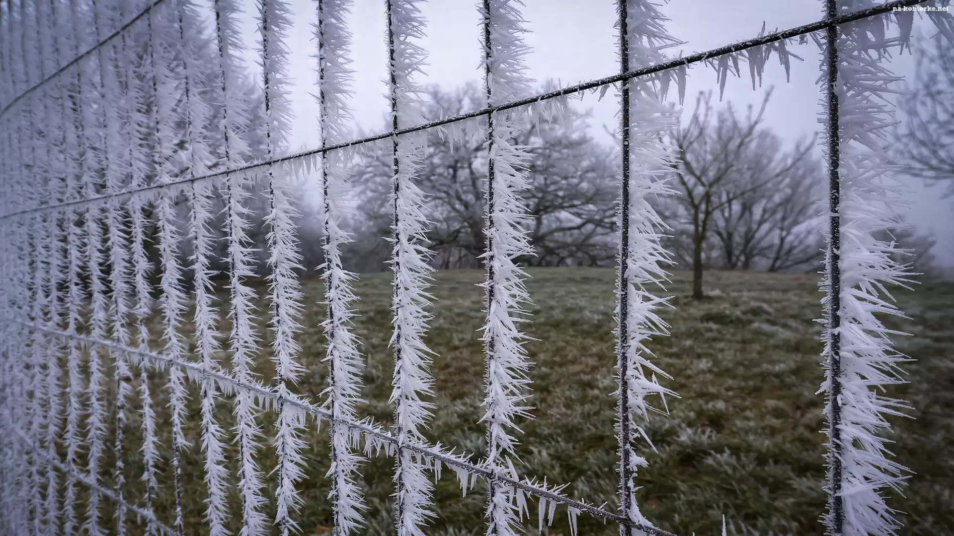 Lód, Zima, Druciany, Pole, Płot, Szron, Oszroniony na Komórkę