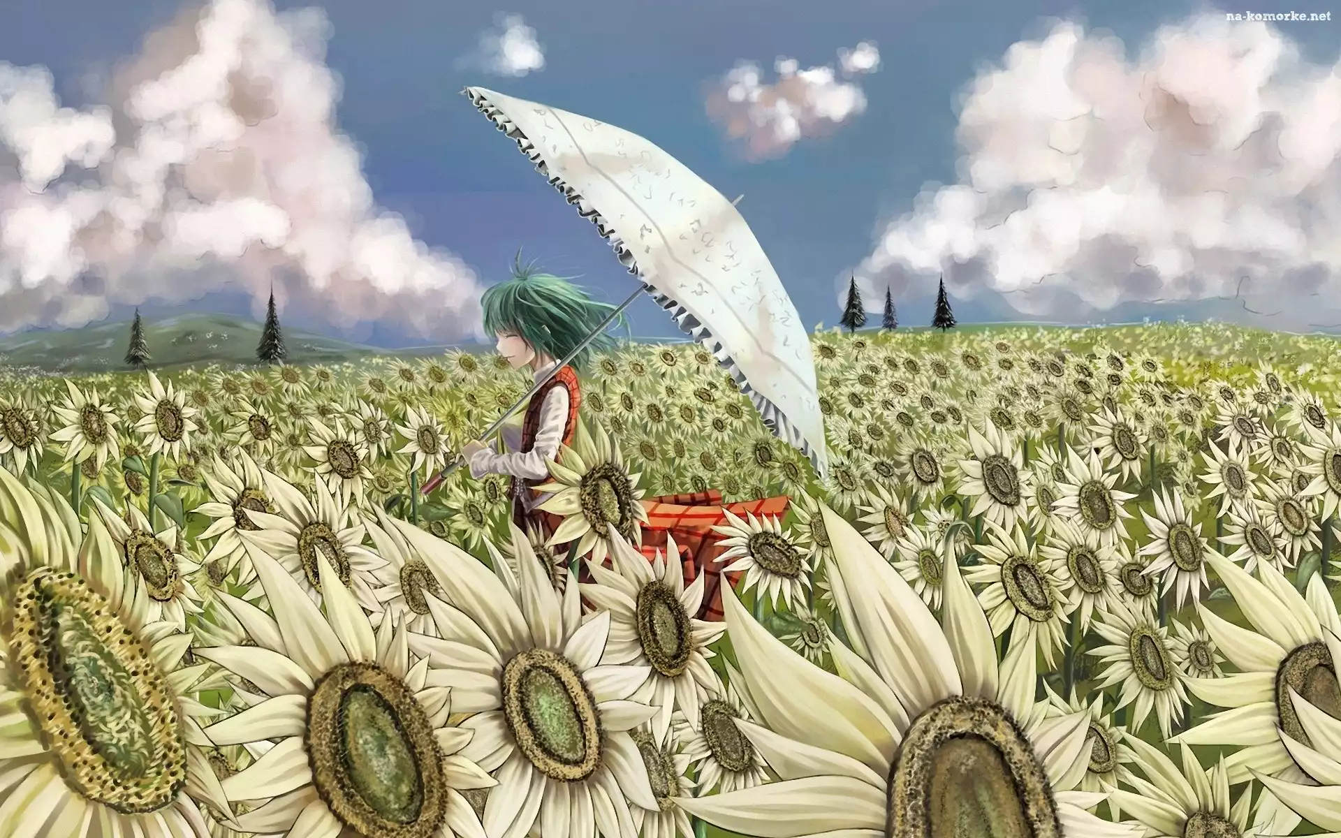 Pole Słoneczników, Dziewczyna, Parasol na Komórkę