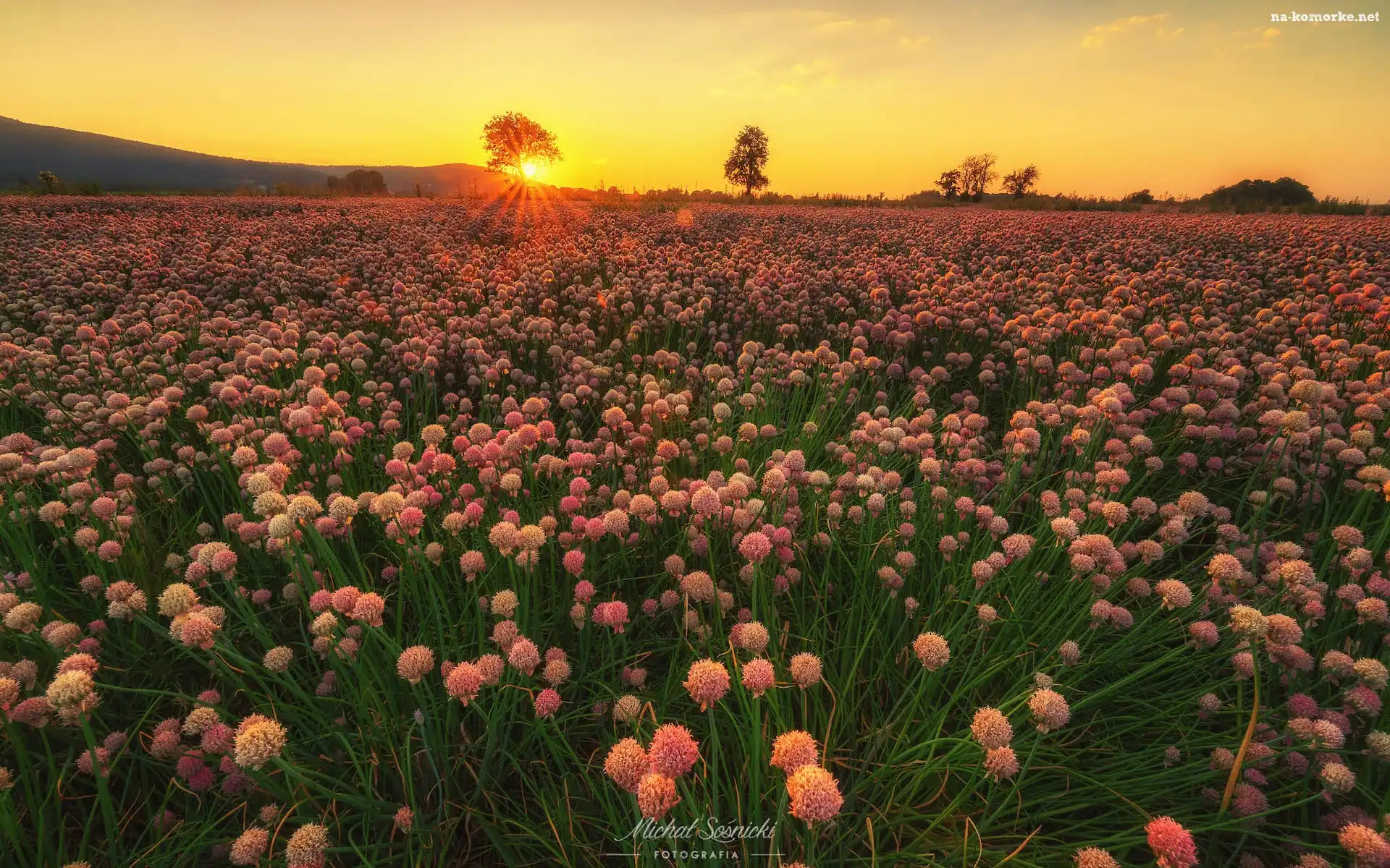 Pole, Wschód słońca, Kwitnący, Szczypiorek na Komórkę