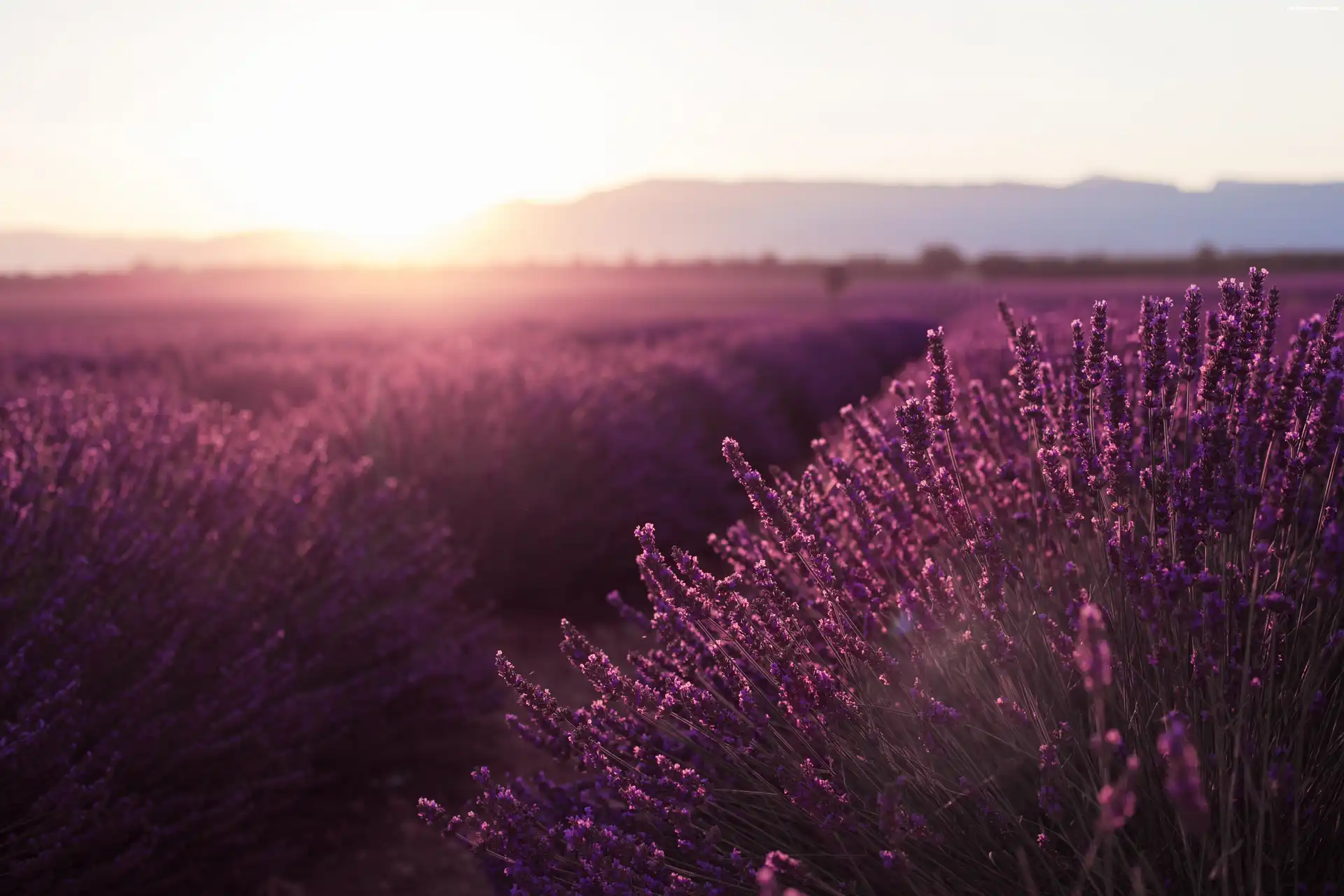 Pole, Góry, Lawenda, Słońce na Komórkę