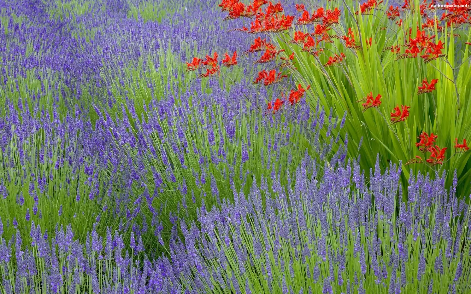 Pole, Kwiatki, Lawenda, Czerwone na Komórkę