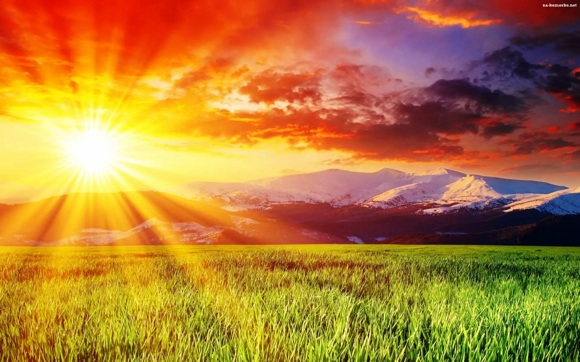Pole, Chmury, Słońce, Góry na Komórkę