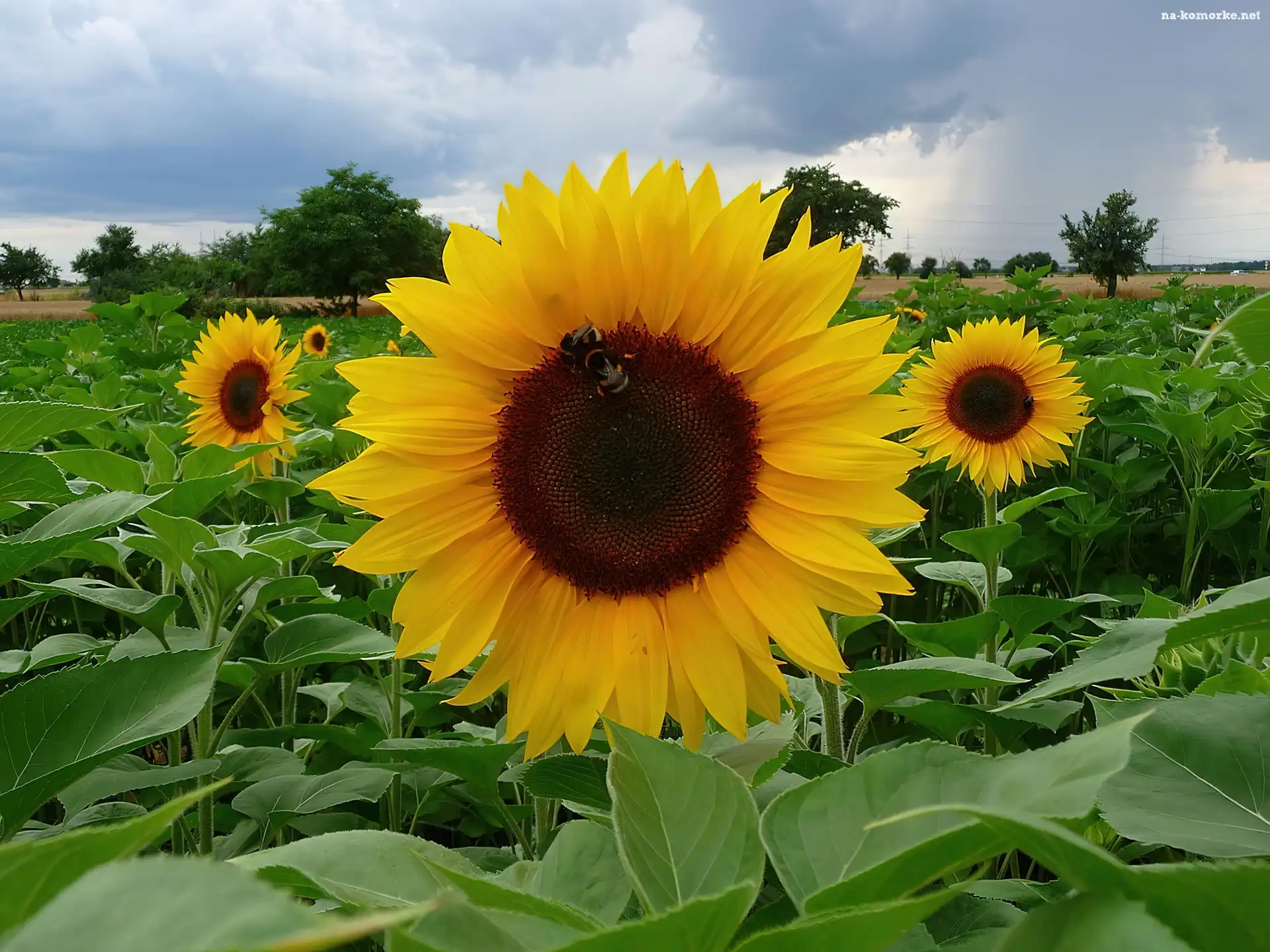 Pole, Chmury, Słoneczników, Drzewa na Komórkę