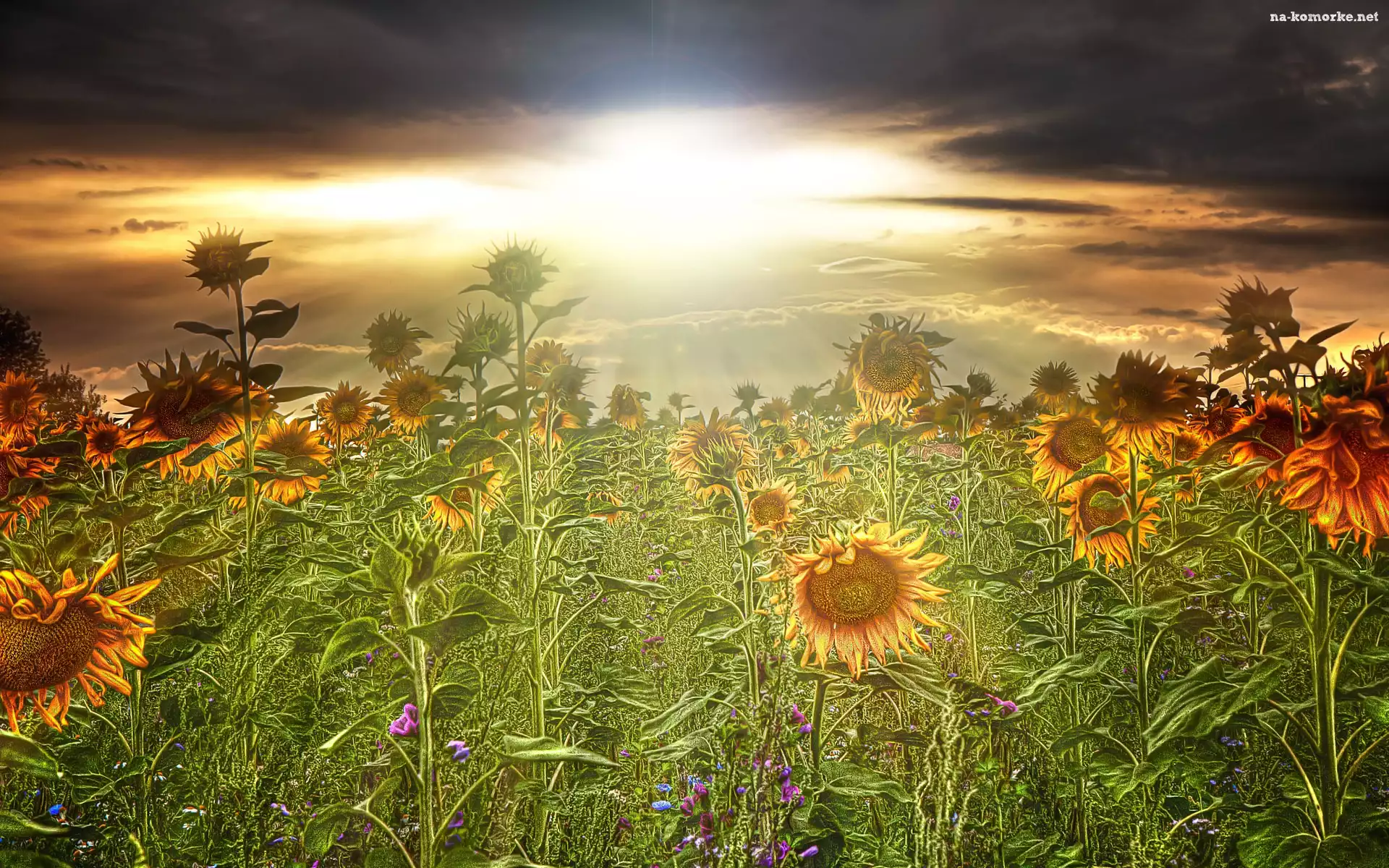 Pole, Słońca, Słoneczników, Zachód na Komórkę